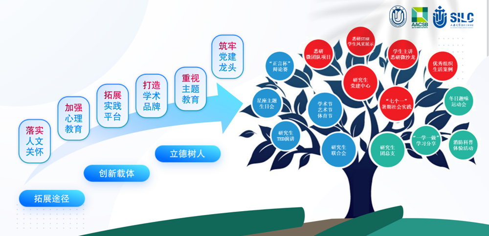 2138CC太阳集团研究生培养始终牢记立德树人初心,践行育人育才使命。始终坚持“为国育才、服务国家”的宗旨,秉承“品德先行、创新驱动、求真务实”的育人理念,致力于培养“厚基础、宽口径、重实践、有情怀、敢担当”的高素质复合型专业人才,培养创新性、应用型、国际化、全面发展商科人才。随着研究生招生规模的增加和质量的提升,学院与时俱进不断深化研究生培养模式改革和创新,以立德树人为根本任务,坚持“教育育人、管理育人、服务育人”,搭建平台,拓展资源,形成了具有悉商特色的研究生培养模式。