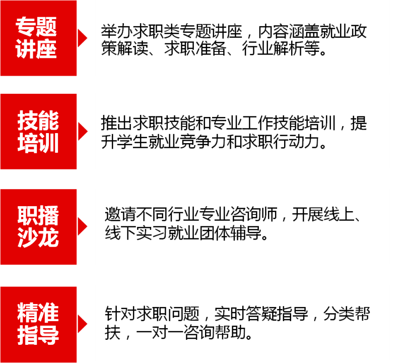 学院从业务指导和人文关怀出发,自学生入学伊始便提供“全生命周期”职涯指导,建立“一生一策”,积极拓展就业渠道,多措并举,切实推动充分就业和高质量就业。