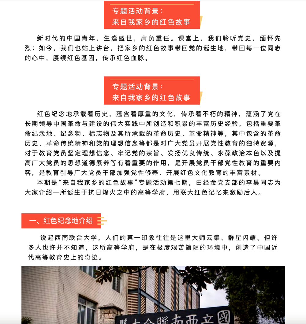 “半月谈”:为扎实推进党史学习教育,加强红色学习,引导党员增强政治意识,继承并发扬党的优良传统,不忘初心,砥砺前行,党总支和党建中心特推出系列活动“半月谈”,设立“青春心向党”、“腾飞的中国经济”、“来自我家乡的红色故事”、“恰是百年风华”、“红色星火永相传”五大专题,引导党员通过不同方式在“参与、体验、思考”中学习,激发爱国热情和历史责任感,坚定理想信念,实现新作为。