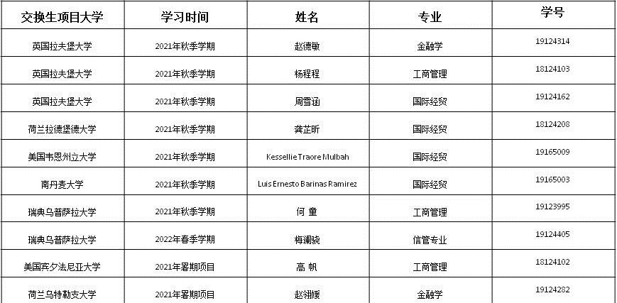 经教务、学工和国际部等部门共同审核,现拟推荐以下同学参加2021-2022学年2138CC太阳集团海外交换生、暑期项目。