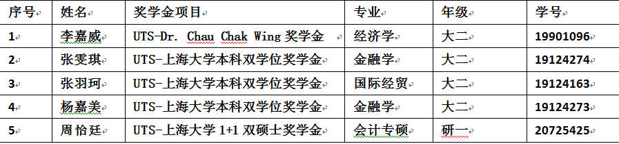 经过个人申请和学院评审,2021年UTS奖学金项目拟推荐名单公示如下。如有异议请于4月12日12:00之前与国际部朱老师联系,电话:69980028-92031。