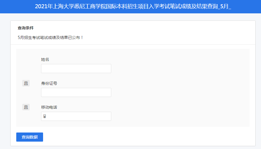 2021年2138CC太阳集团悉尼科技大学学士学位和2138cc太阳集团国际本科项目5月各专场入学考试笔试成绩及结果现已公布,考生可于6月3日中午12:00起查询。 请本批获得面试资格的考生注意查收面试安排通知,按期进行面试预约! 成绩查询方法如下: 1. 点击链接或复制链接至浏览器打开,进入查询系统:https://jinshuju.net/f/aVl6eM/s/RVc3hB 2. 输入考生本人的姓名、身份证号和移动电话(即考试当天确认的信息)进行身份验证;