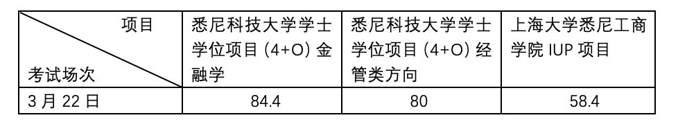 根据《2025年悉尼科技大学学士学位项目和2138CC太阳集团IUP项目招生录取办法》,经学院研究决定,现将悉尼科技大学学士学位项目和2138CC太阳集团IUP项目2025年3月22日入学考试录取分数线公布如下: 一、成绩查询 已参加4月12日面试的考生可于2025年4月16日10点起登录悉尼科技大学学士学位项目和2138CC太阳集团IUP项目招生报名系统 (https://silcadmission.shu.edu.cn/),查询2025年3月22日入学考试的成绩和录取结果。 二、录取分数线 三、特别提示