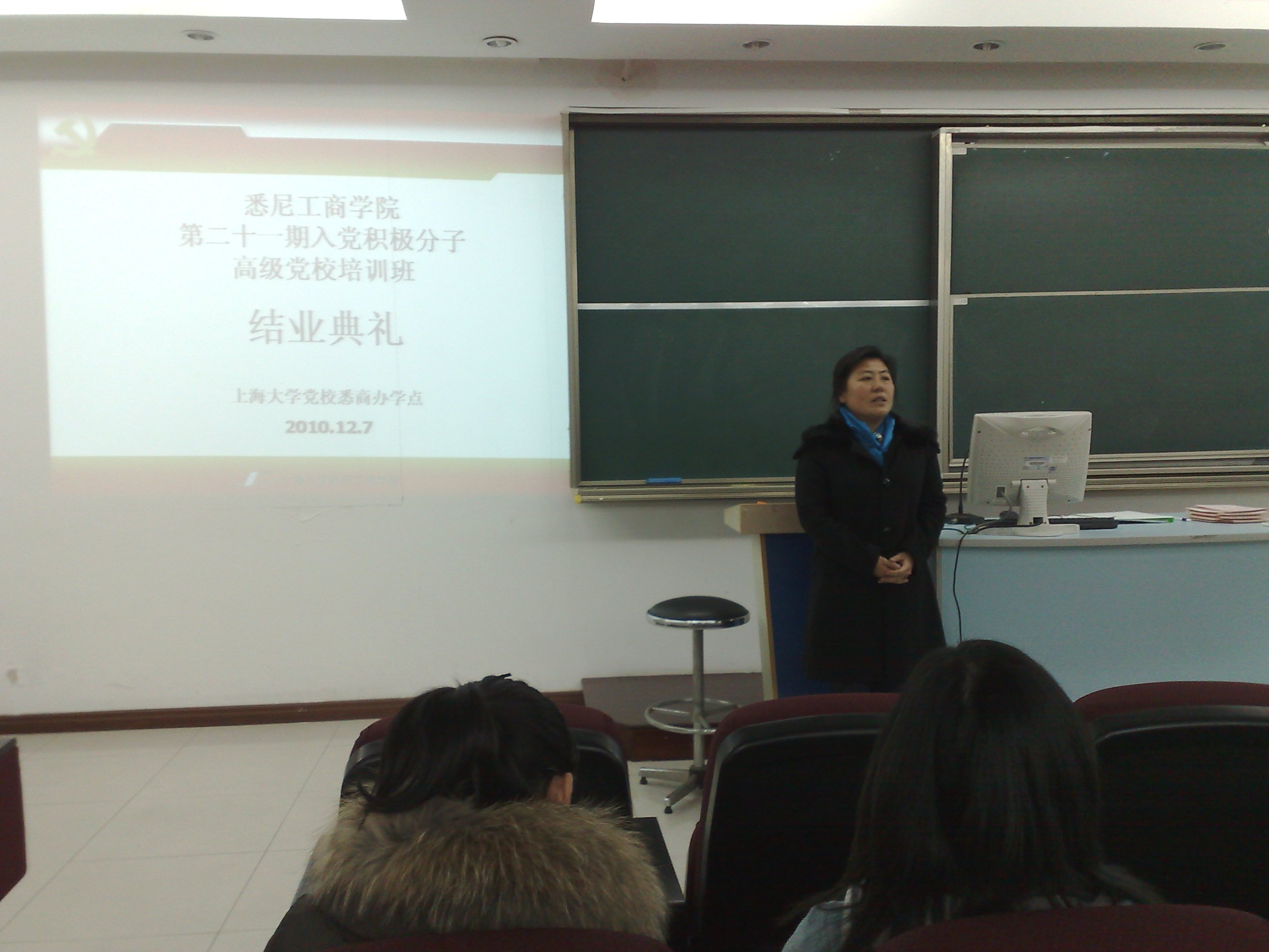 学院第二十一期入党积极分子高级党校培训班历时五周,于12月7日晚召开结业典礼。本次培训班学员组成包含2007——2010级本科生、高职生和留学直通班学生,经过党课培训、学习小结、上机考试和"党员示范岗"实践项目等层层考核,共有122名学员顺利获得结业证书。