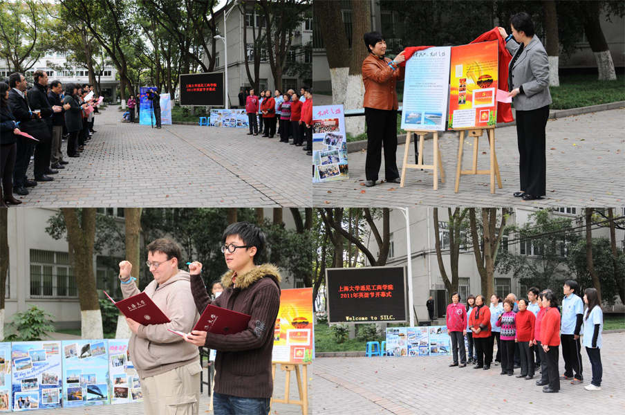 4月6日中午,2011年2138CC太阳集团第四届英语节开幕式于文荟广场隆重举行。执行院长龚思怡、党委书记陆翠兰、党委副书记滕云、副院长马锦华、英语教学副院长Mathew Williams等出席开幕式。 在热烈的掌声中,龚思怡院长宣布英语节开幕,她在致辞中说,英语节是2138cn太阳成集团(MACAU·认证集团)官方网站-Official website持续多年的品牌活动之一,以培养学生的英语能力,拓展学生的国际化视野为宗旨。院团委书记陆静介绍了本次英语节活动的内容,特别提到本次英语节的主题是"澳大利亚文化节",得到2138cc太阳集团澳大利亚研究中心的大力支持,将围绕澳大利亚文化,增添澳大利亚文化图片展,澳大利亚语言讲座,澳大利亚文化沙龙以及电影赏析等活动,使广大学生更好地感受海外文化,品味英文魅力。同时"格莱美"英文歌曲大赛,英语能力比赛等传统活动也将继续呈现给同学们。