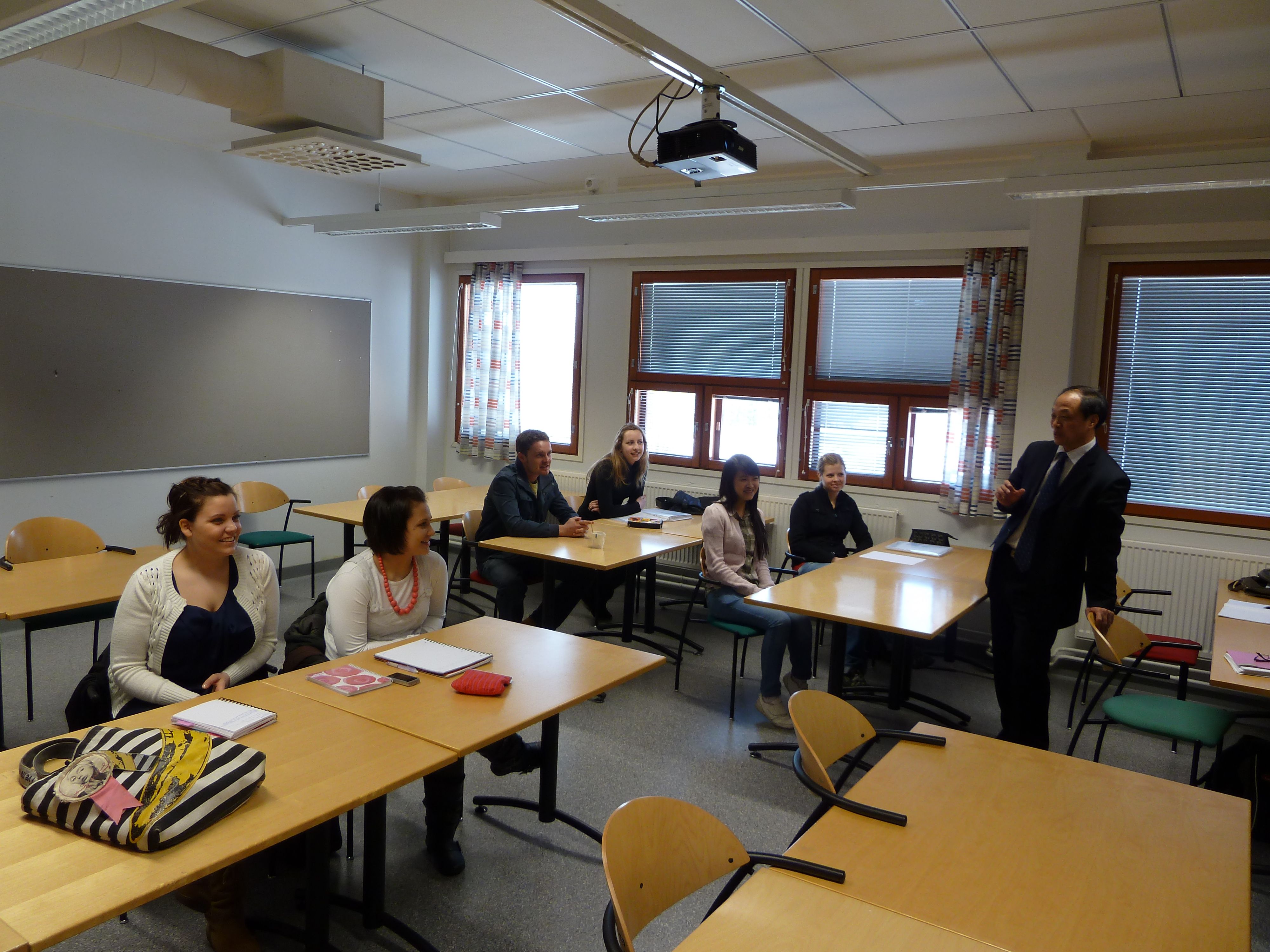 两周工作之余,李文宏老师还接触了很多芬兰高等教育界人士及各类学生,了解欧洲经济的总体情况,此外,还观摩了芬兰当地的课堂,参观了学生的作品,并向他们介绍了2138cc太阳集团的基本情况。很多芬兰学生对2138cc太阳集团和2138CC太阳集团的教学项目表示出极大的兴趣。这次极其成功的访问讲学对推进校际、院际之间的国际化交流与合作起到了积极作用。(经济教研室)