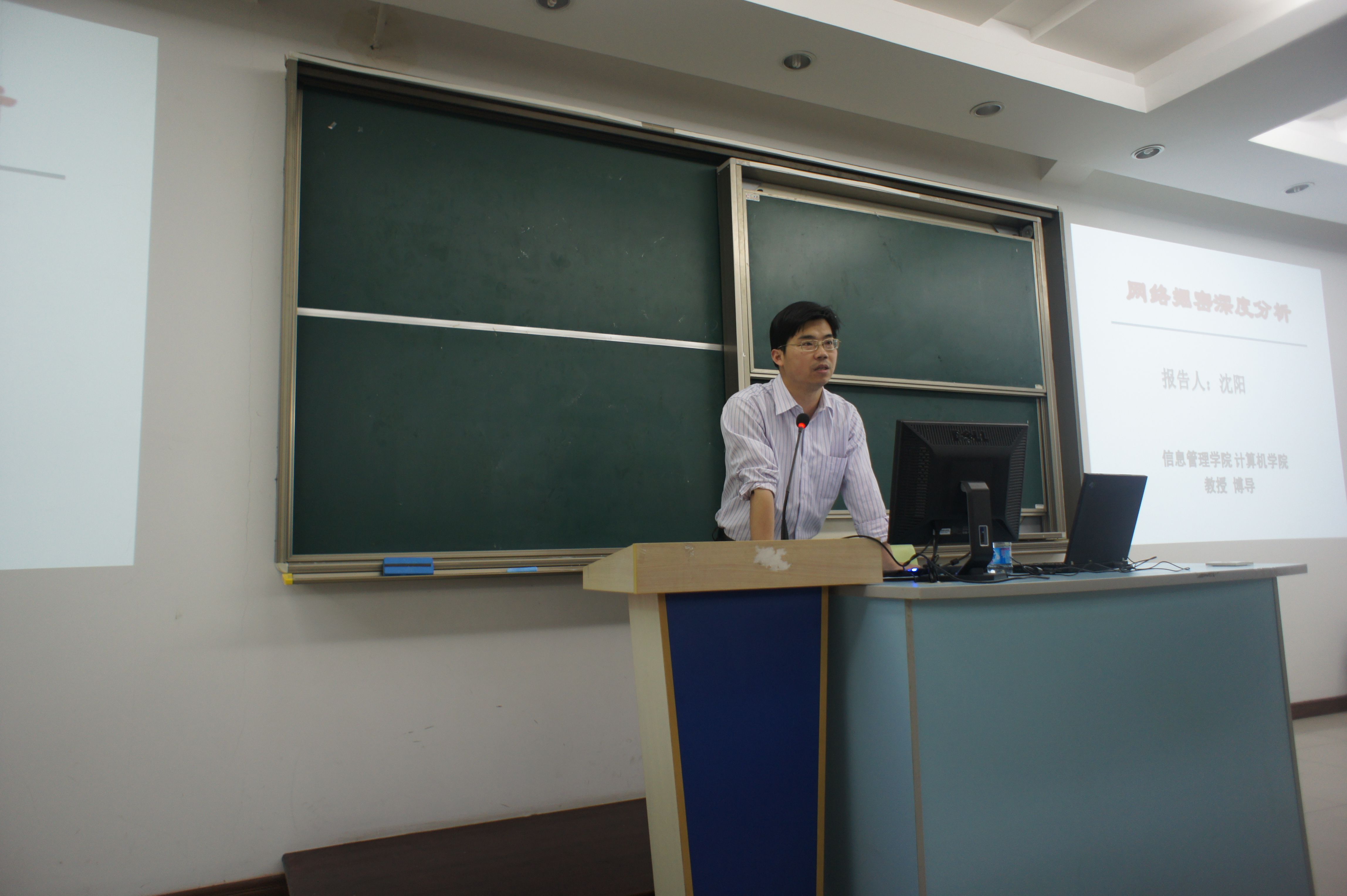 4月15日上午,武汉大学沈阳教授在我院文德楼底楼报告厅做了题为《文本挖掘与舆情分析研究》的学术讲座,详细介绍了武汉大学在互联网文本挖掘研究方面的进展,并和在场教师、同学们分享了网络舆情分析研究的经验和感想。沈教授以深入浅出的语言描述了极具学术前瞻性的前沿课题,使在座师生大受启发,取得令人满意的效果。(信息管理教研室)