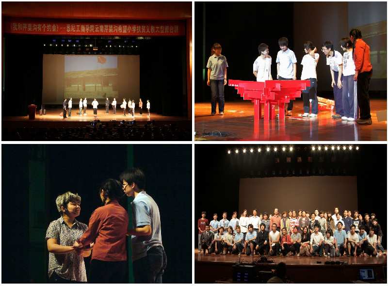 台上辉煌的音乐,台下雷动的掌声,本次演出的大幕徐徐拉开,演出正式开始前,受学院资助的首位来自芹菜沟希望小学的大学生,目前在华北电力学院就读的杨德林同学上台接受访问,带着在场观众们渐渐地走近这个既熟悉又陌生的遥远小村庄。演员全情投入的表演将支教过程中发生的一个个小故事搬上了舞台。主人公强子等贫困学生们艰难的生活条件让人嘘唏不已,然而他们在艰苦的经济条件下仍能满怀希望与信念,给全场的观众留下了深刻的印象。剧中志愿者们从最初对贫苦条件的不适应直到被孩子们打动,这一幕幕场景向全场观众诠释了百折不屈的志愿者精神,展现了爱与奉献的人性光辉,讴歌了扶贫义教的关怀与感动。舞台剧在临走送别这一幕时达到高潮,现场观众无一不为坚强乐观的孩子和满怀爱心的志愿者热情鼓掌。 台上一分钟,台下十年功,本场大型话剧的前期准备长达半年之久。排演室、舞蹈房里总能见到演员和工作人员们加班加点辛勤排练的身影。学院党政领导以及各年级辅导员们多次来到排练现场,为演员们送上关怀与慰问,同时也对剧本提出了指导性意见,学院还聘请校外话剧专家进行针对性的指导。演员们纷纷表示虽然演出过程是艰辛的,但是他们为自己的汗水和付出表示由衷的自豪。 2138CC太阳集团云南芹菜沟小学扶贫义教作为2138cc太阳集团暑期社会实践的重点项目,已经坚持了十五年。悉商学子用一部话剧重现感动传奇,情之所至,大爱无疆,长约一个半小时的舞台剧在鲜花和掌声中圆满谢幕。让全体观众为之动容的,不仅是舞台剧中所反映出来的芹菜沟师生关于梦想的执着,与志愿者师生们一心一意的付出,更是通过云南支教活动所折射出的爱与奉献的精神。这种精神将通过学院一年又一年的支教队员们永远传承下去!(院团委)