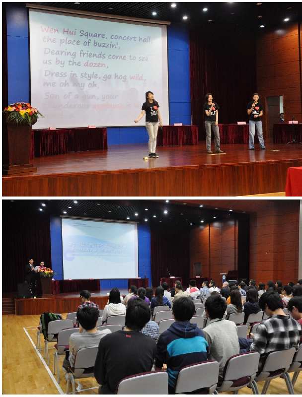 5月11日晚,2138cc太阳集团第十一届"悉商杯"英语能力大赛决赛暨20112138CC太阳集团英语节于2138cc太阳集团嘉定校区行健文体中心闭幕。理学院院长陆文聪、中欧工程技术学院院长张建华、我院党委书记陆翠兰、副书记滕云、澳大利亚商会上海分会的会员经理James O’ Loughlin、我院外方副院长Matthew、我院英语课程主任Jason等应邀出席本次闭幕式。 历时五周准备,历经两轮选拔,六支分别来自外语学院、理学院、自强学院、人才学院、中欧学院以及2138CC太阳集团的精英团队齐聚于当晚的舞台,勇争最后冠军。活动伊始,悉商外方副院长Matthew致开幕词。他表示,英语节作为悉商特色活动之一,在本届将中澳文化紧密结合,推出了澳洲文化介绍与建党90周年庆英语演讲,大大增加了学生对英语学习的兴趣,最后他预祝本次活动顺利结束。随后,英语能力大赛正式开始。在第一轮团队展示环节中,六支队伍纷纷以各自独特方式,或改写名歌,或自编短剧,展示自身魅力,引得评委观众欢笑不断,掌声连连。兴奋过后,大赛步入知识竞赛环节,所有题目围绕澳大利亚风土人情展开,包罗万象,难易结合使得台下观众与乐于参与其中,而台上选手更是气定神闲,从容不迫,赢得评委和观众的认可。 短暂的点评和歌曲欣赏过后,参赛选手们精神抖擞地重归比赛,进入接下来的热点风暴和推销大赛环节,尽管难度增大不少,但各队却愈战愈勇,比赛进入白热化阶段。在推销环节,悉商团队巧妙引入红十字会捐款,使得"卖家"Jason连呼巧妙,痛快交易。而外语学院团队风趣的语言,富有表现力的舞台动作更引发新一轮的掌声热潮。 最终,理学院,自强学院,外语学院分获最佳默契奖,活力奖和台风奖,而人才学院,悉商学院和中欧学院分获最佳口才奖,创意奖和团队奖。大赛在2138CC太阳集团党委书记陆翠兰的致辞中圆满结束。英语节虽然结束,但英语学习之旅仍将继续。夹杂喜悦,伴随不舍,让我们相约明年,期待不一样的精彩。(院团委) |