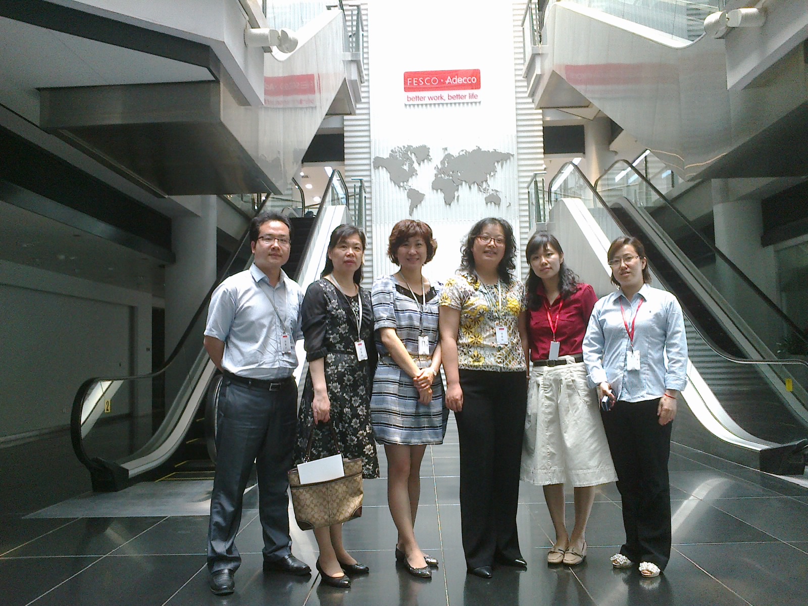 外企德科(FESCO Adecco)系中国人力资源服务行业最具竞争力和品牌价值的FESCO和全球人力资源服务行业领航者Adecco成立的一家中外合资人力资源服务企业,旨在为企业提供最好的专业人才招聘和人才派遣等相关人力资源服务。 在人事经理毛瑛的引导下,逐层参观了位于中山南路的外企德科楼,醒目的公司红色标识"better work, better life"迅速传递着活力和热情。每个楼层的办公区和员工休息区相得益彰,为员工精心打造一个宽松舒适的工作休息环境。当行至招聘部、客户服务部等部门时,胡老师和曹老师亲切地和我院往届毕业生交流,了解工作情况。