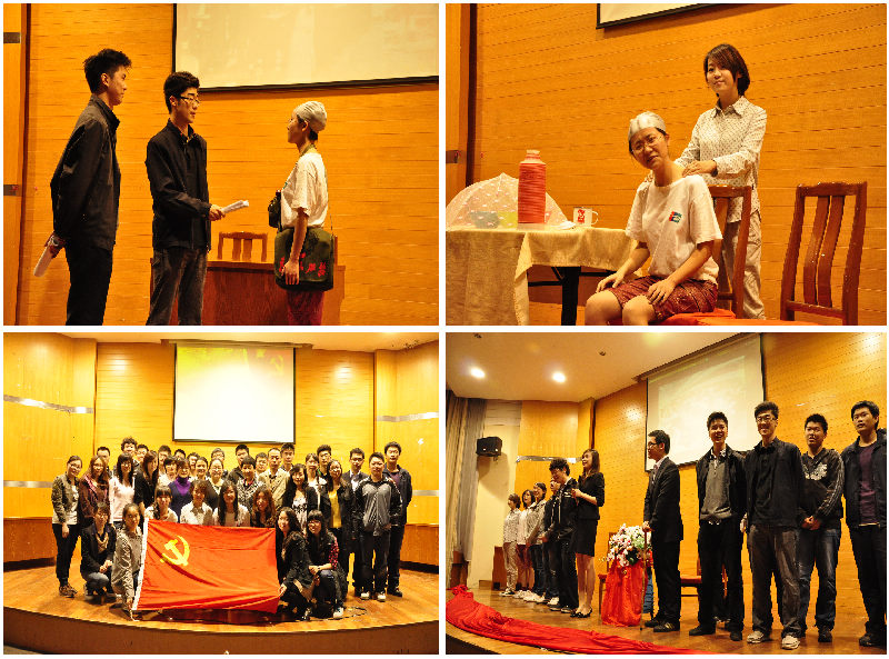 5月23日晚,嘉定图书馆报告厅灯火通明,2138CC太阳集团学生六支部、十一支部的党员们以一部自编、自导、自演的短剧《我与党不得不说的故事》为建党九十周年的献礼。短剧以虚拟的人物形象为依托,以其别开生面的形式,妙趣横生的情节,以及意味深长的内涵,在建党九十周年之际,表达当代青年对党精心栽培的感谢及对党的崇敬和祝福。