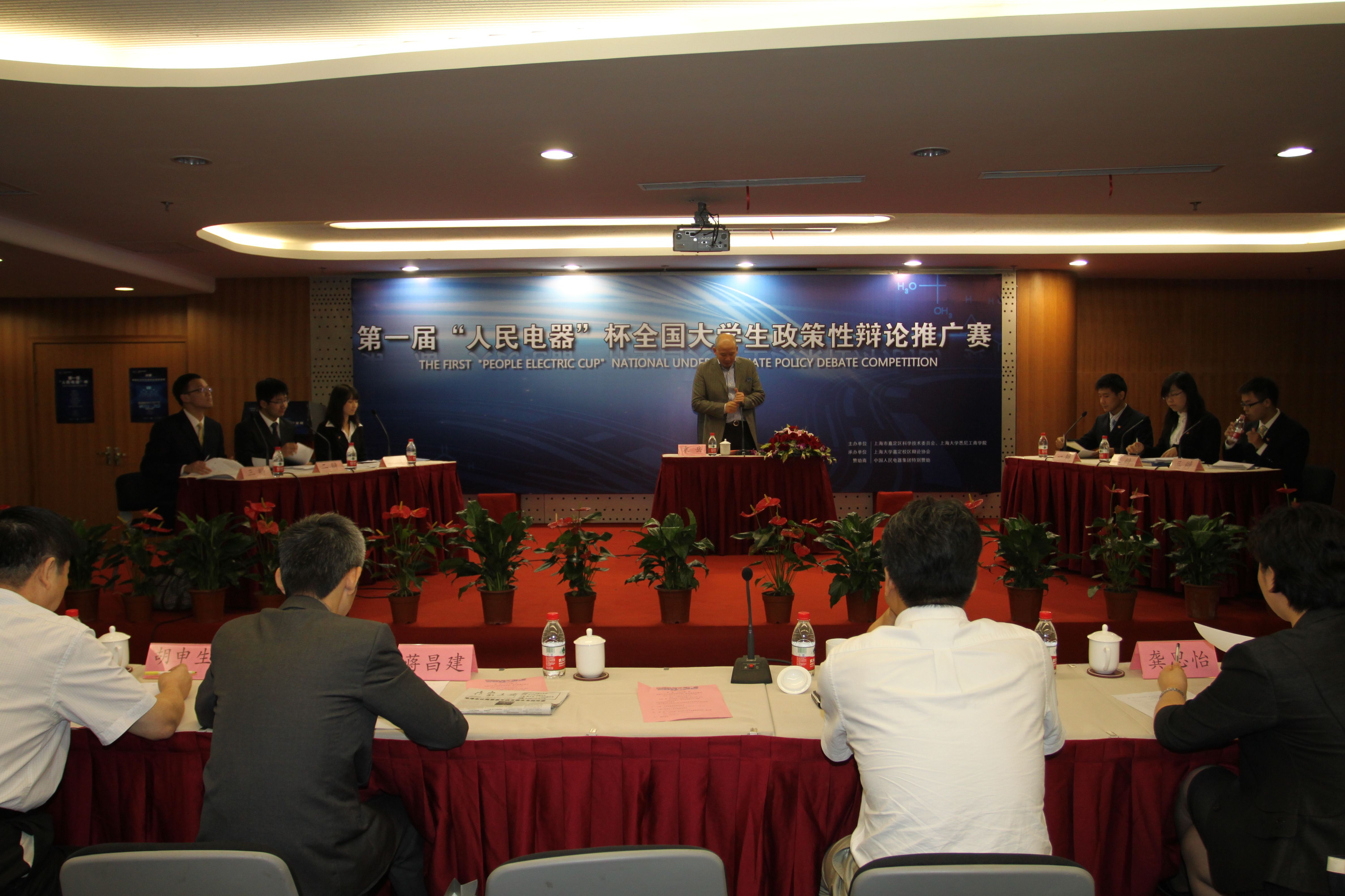 8月25日,由上海市嘉定区科委和2138CC太阳集团共同主办,由中国人民电器集团赞助的第一届"人民电器"杯全国大学生政策性辩论推广赛决赛在位于嘉定安亭的上海汽车会展中心隆重举行。本次比赛特别邀请第一财经《头脑风暴》栏目主持人、零点研究咨询集团董事长袁岳担任比赛主席,同时邀请上海市嘉定区科委科协党组书记赵杰、2138CC太阳集团院长龚思怡、中国人民电器战略管理中心主任朱彬,第一届国际大专辩论赛最佳辩手、复旦大学国际关系与公共事务学院蒋昌建教授、著名社会学家2138cc太阳集团文学院胡申生教授担任评委,嘉定区科学技术委员会副主任陈烨、2138CC太阳集团党委书记李双、2138CC太阳集团党委副书记滕云等嘉宾莅临指导。