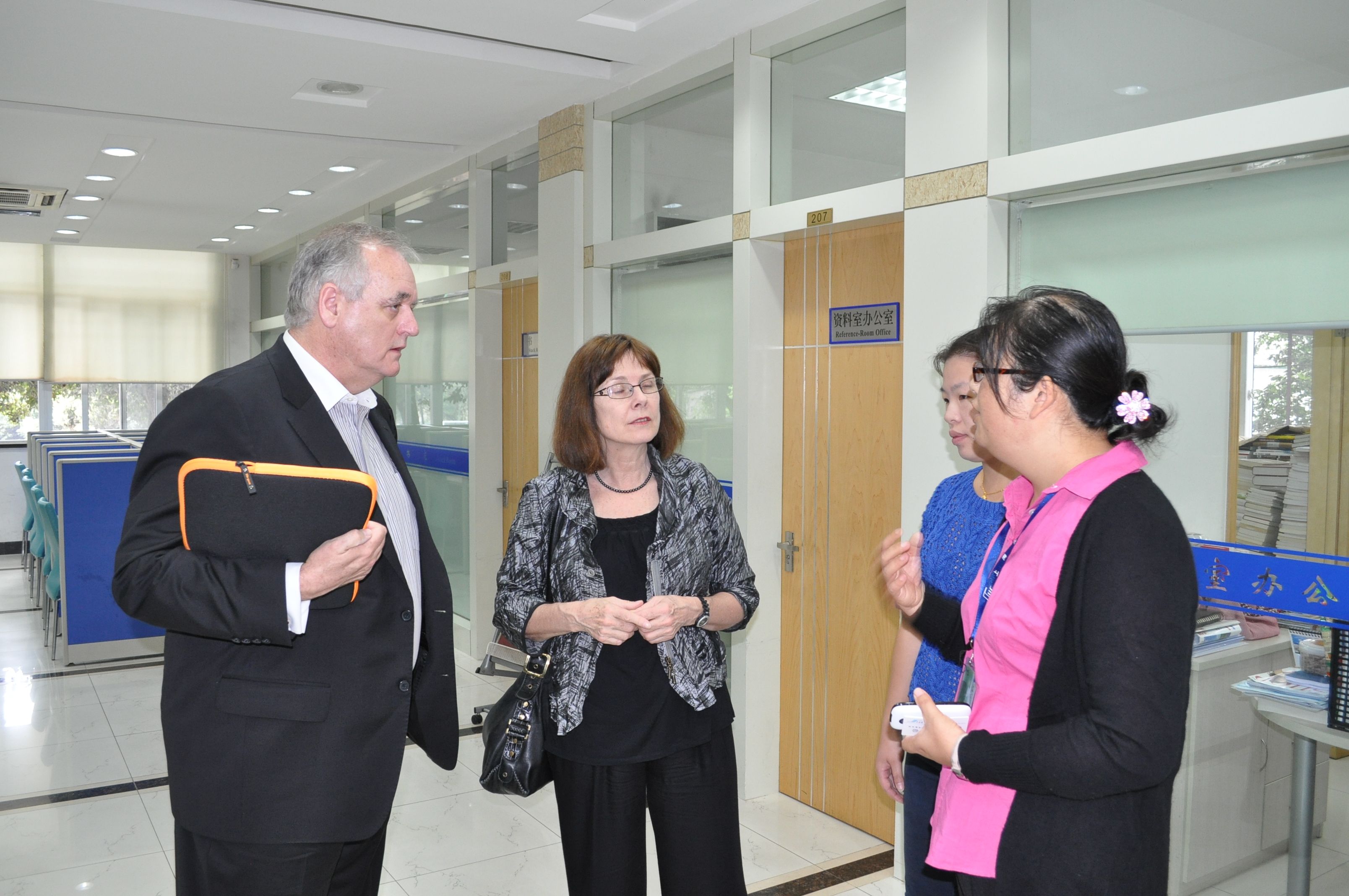 9月20日,新南威尔士州教育培训部Hilary Winchester教授由悉尼科技大学INSEARCH学院院长Alex Murphy先生、INSEARCH学院副院长Tim Laurence先生陪同,访问我院,对我院INSEARCH课程的教学质量、教学资源进行了考察。院长龚思怡,常务副院长张能辉与Winchester教授进行了深度交流。Winchester教授此次来访,仔细考察了我院的教学设施,并与我院各学科负责人、部分教师及学生进行了专项访谈。Winchester教授对我院学生、教职工、教学资源等办学各个方面均给予了高度评价。(院办) |