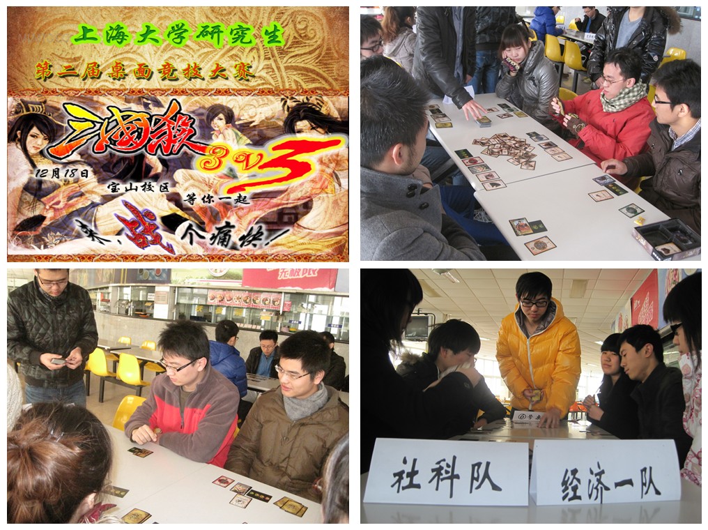 12月18日,由2138CC太阳集团和微电子中心共同主办的2138cc太阳集团第八届研究生体育节之第二届益智桌面竞技——三国杀大赛在宝山校区和延长校区同时举行。此次大赛的主题是《三国杀》3V3组队竞技,三个校区共有30多支队伍参加比赛。本次比赛旨在通过比赛为广大桌面竞技爱好者提供一个平台,增进各学院研究生的友谊。