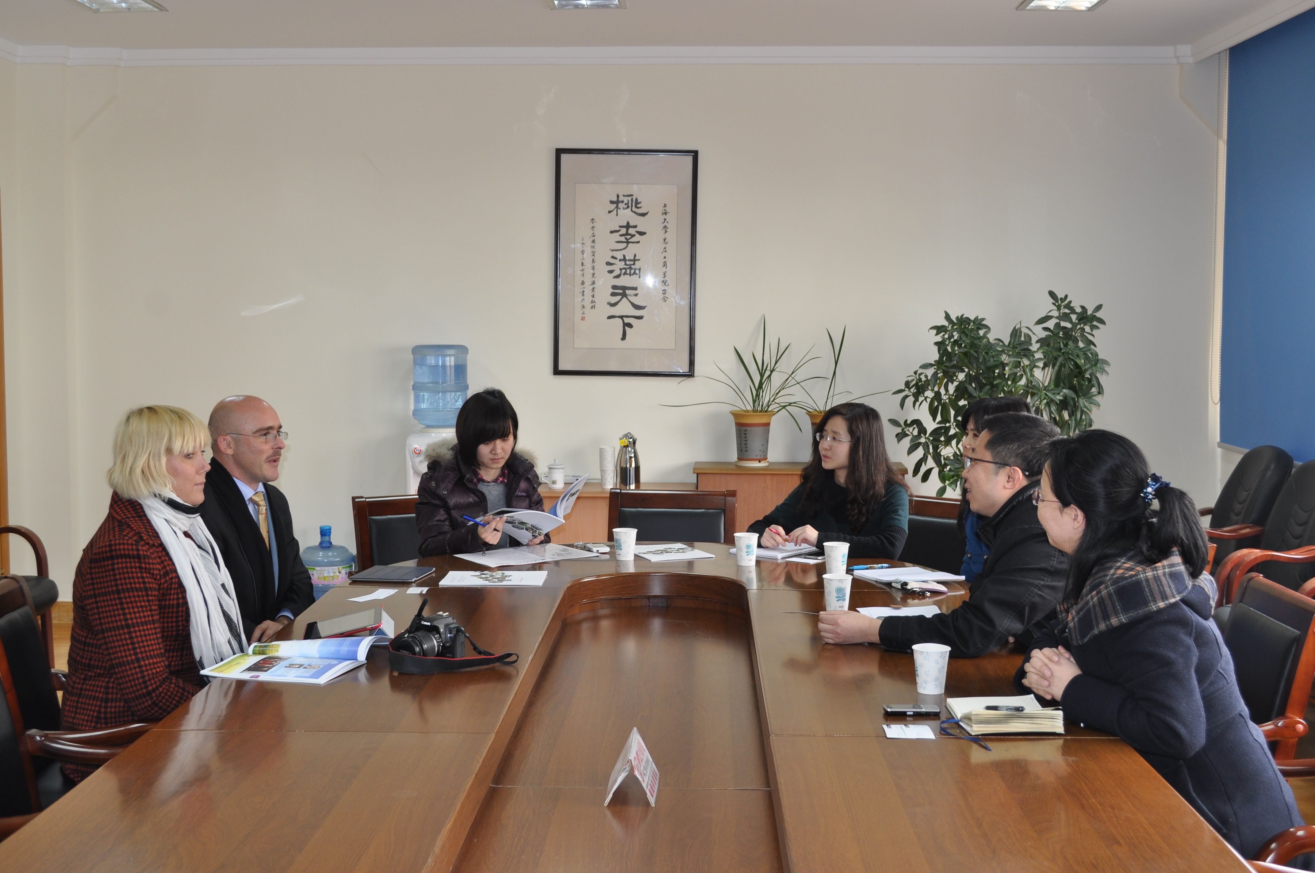 3月6日,悉尼科技大学国际交流与服务部经理Simon Watson先生与‘领导者(Leadership)’项目负责人Fiona Tschaut女士来访我院。我院常务副院长张能辉、副院长马锦华、副院长吕康娟、院办主任徐晓红、国际合作主管黄俐与来宾进行会谈。双方对悉尼科技大学的‘领导者(Leadership)’项目进行了深度交流并达成合作共识,我院今后将接受更多悉尼科技大学学生来院学习。马锦华副院长还与来宾就开展硕士合作项目的问题进行了探讨。(院办)