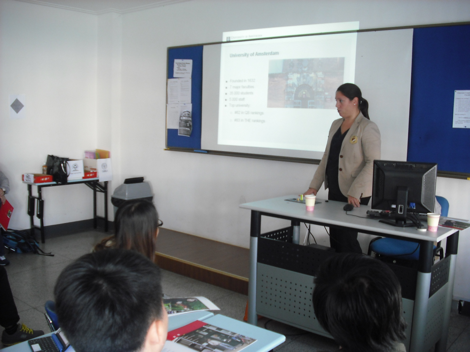 2012年10月23日中午12时30分,荷兰阿姆斯特丹大学Nathalie Tsang老师来访我院并于文达楼召开招生宣讲会。会间Tsang老师就阿姆斯特丹大学及其商学院的基本概况及以及最新的招生讯息进行了详细的介绍。 阿姆斯特丹大学(UvA)位于荷兰首都阿姆斯特丹市,风景优美。阿姆斯特丹大学是一所拥有丰富历史的现代化大学,是欧洲最古老和著名的大学之一,在最新的QS排名中位于全球第62位,其在泰晤士报高等教育特刊世界大学排名、上海交大世界大学学术排名、莱顿世界大学排名中均位居全球百强。阿姆斯特丹大学拥有7个学院和35,000多名学生,其中包括来自90多个国家的2000多名国际学生,为学生提供了一流国际环境。阿姆斯特丹大学已与我院合作三年,为我院优秀的2+2毕业生提供了入读名校的机会。其对我院2+2项目学生录取标准为雅思总分6.5分(单项不低于6分),悉商前两年专业课不低于80分。 本次宣讲会得到同学们的热烈响应,参与学生的积极性高涨,会上同学们的积极提问和良好的英语能力也给外方留下深刻印象,会后同学们反应校方代表耐心的讲解和答疑为今后的学校申请提供了良好的参照作用