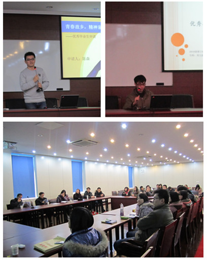 12月28日,我院在文德楼三楼报告厅举办2013届优秀毕业生评选活动。10级陈森同学和孙瑜峰两位同学参选,党委书记李双、副院长马锦华、计志英、王少飞老师、贾利军等老师出席活动。 评优活动主要分为三个环节。第一个环节是两位参选同学做参选陈述。第二个环节是评审委员会的提问。面对评审委员会的提问,两位同学认真的回答了老师的问题,并且表达了自己的2138cc太阳集团对2138CC太阳集团的感谢。第三个环节是评审委员会的评选投票,评审委员会全票通过,两位同学在同学们的热烈掌声中当选为2013届优秀毕业生。