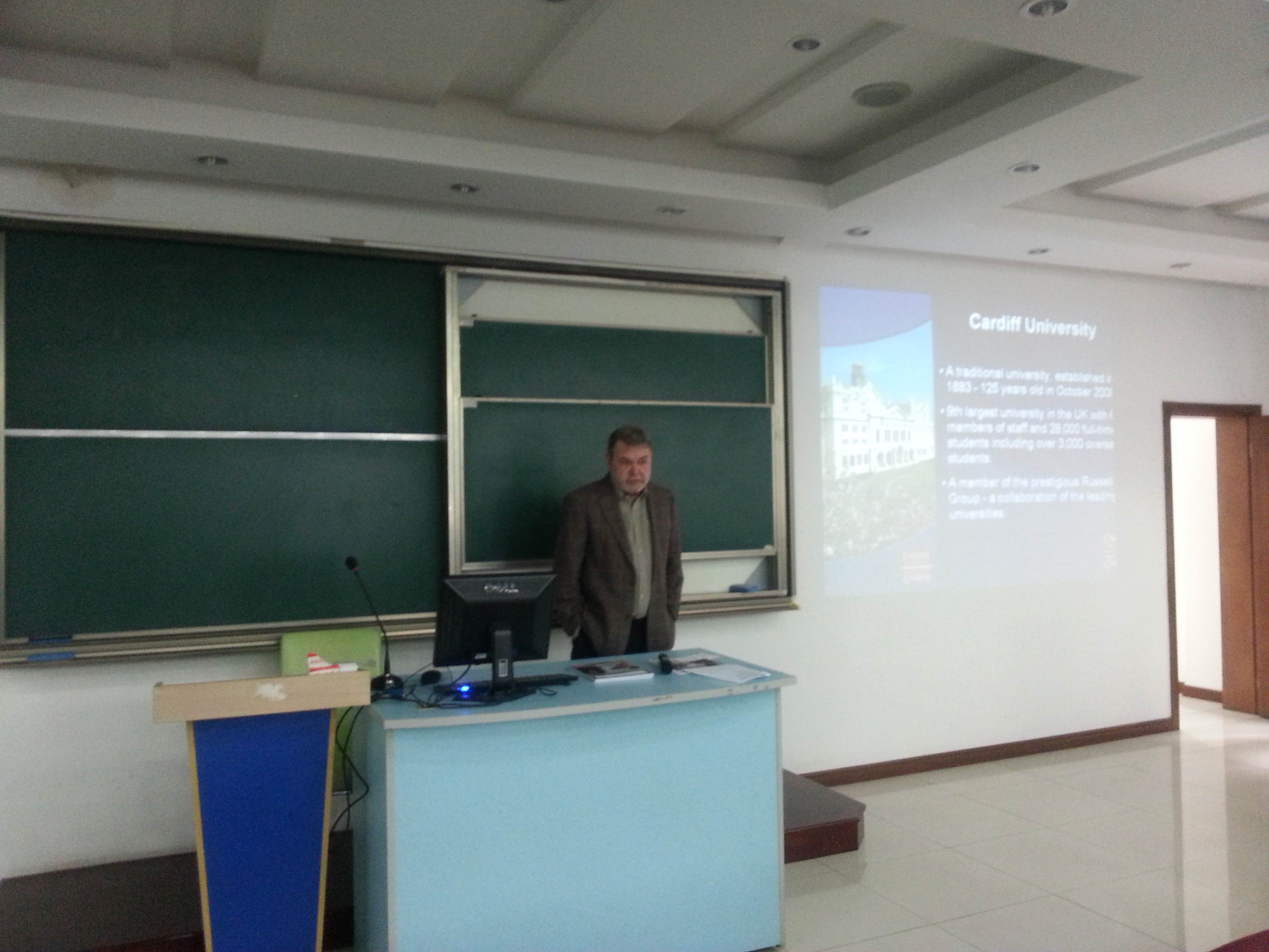 4月1日中午,英国卡迪夫大学国际学生会办公室主任Mr. Don Barry在文德楼一楼报告厅举行硕士招生宣讲会。Don Barry 先生对卡迪夫大学的排名、师资情况、学费、申请条件、地理位置等情况做了系统的介绍,他着重对Cardiff大学商学院开设专业情况及针对我院在读本科学生和自主招生4+1学生的录取标准进行了详细的介绍,并现场解答了同学们的咨询。 卡迪夫大学位于英国威尔士的首府卡迪夫市,该市是著名的旅游胜地,风景优美,治安良好。该校是罗素联盟(红砖联盟)大学之一,其商学院获AACSB和EQUIS认证,在五年一度的英国RAE商学院排名中位列第四,仅次于伦敦商学院,帝国理工商学院及剑桥大学商学院。该校规模宏大,历史悠久,师资力量雄厚,堪称世界级名校。研究生学年学费折合人民币约130000人民币,生活费每年约100000人民币。