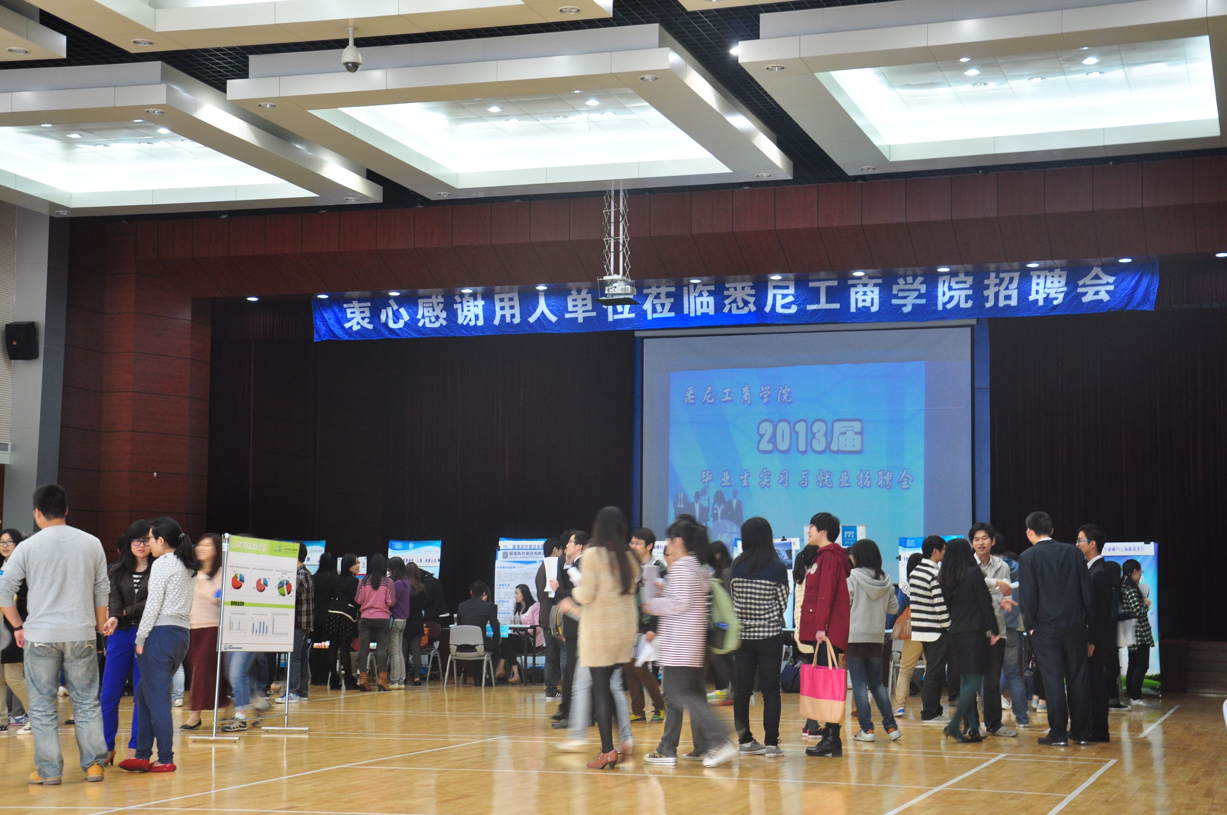 为把2013届毕业生的就业工作做好,为更多应届毕业生创造求职机会,学院在去年年底已经成功举办了一次就业招聘会。本次招聘会不仅为尚未落实就业岗位的应届毕业生提供宝贵的面试机会,招聘会还把服务对象扩展到三年级学生群体,很多企业提供了大量实习岗位。除了应届毕业生参加此次招聘会,学院绝大多数三年级学生都来到现场踊跃应聘实习岗位。他们纷纷表示,参加本次招聘会是明年正式就业应聘的一次宝贵热身,感谢学院给大家创造了这样一个难得的好机会。招聘会还吸引了部分来自我校其它兄弟学院的研究生、本科生的参与,充分实现了资源共享,达到了预期的目的。(院办)