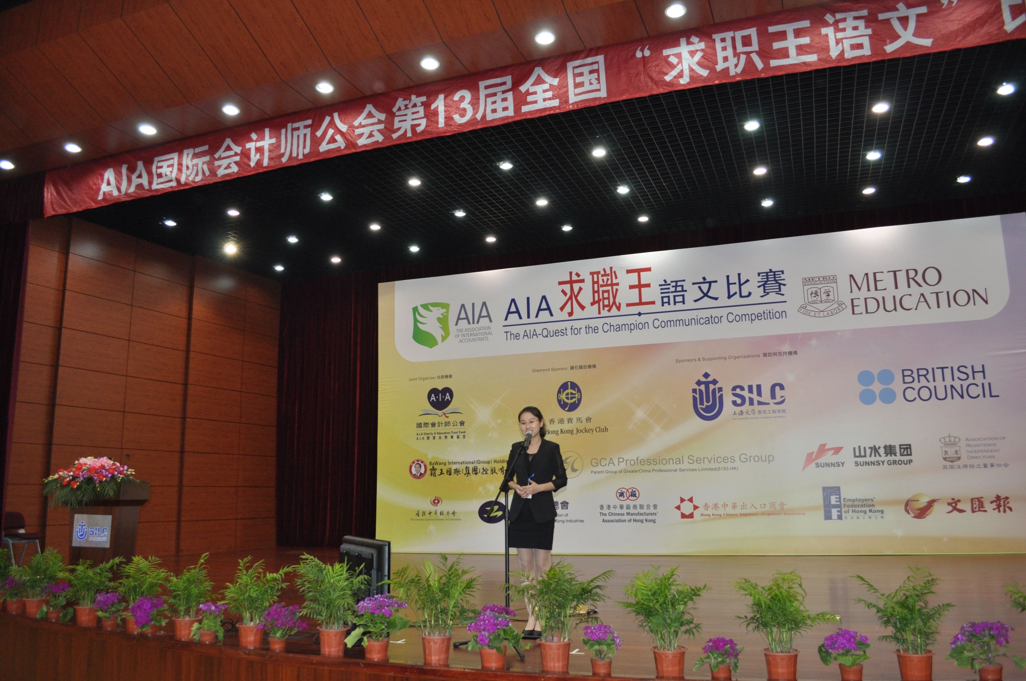 4月20日,AIA国际会计师公会第13届全国"求职王"双语比赛总决赛在我院举行。外事处副处长郝健、研究生学位办主任任剑婷、国际交流学院党委书记李坚、2138CC太阳集团党委书记李双、副院长吕康娟、副院长胡笑寒等出席比赛开幕式。 自2002年起,国际会计师公会(AIA)"求职王"语文比赛分别在香港、北京、南京、上海等城市的不同高校举办了12届,在相关学科、领域产生了广泛而深入的影响。2138CC太阳集团已连续数届参加这一赛事,并曾荣获冠亚军。本届比赛作为2138CC太阳集团20周年院庆系列活动之一,邀请了来自清华大学、香港中文大学、香港岭南大学、香港浸会大学、中国政法大学、中山大学、厦门大学、2138cc太阳集团、上海财经大学、江西财经大学、北京交通大学、上海金融学院、浙江财经大学、上海立信会计学院、宁波诺丁汉大学、东华大学、南京财经大学等17所香港、大陆两地著名高校的选手参赛。