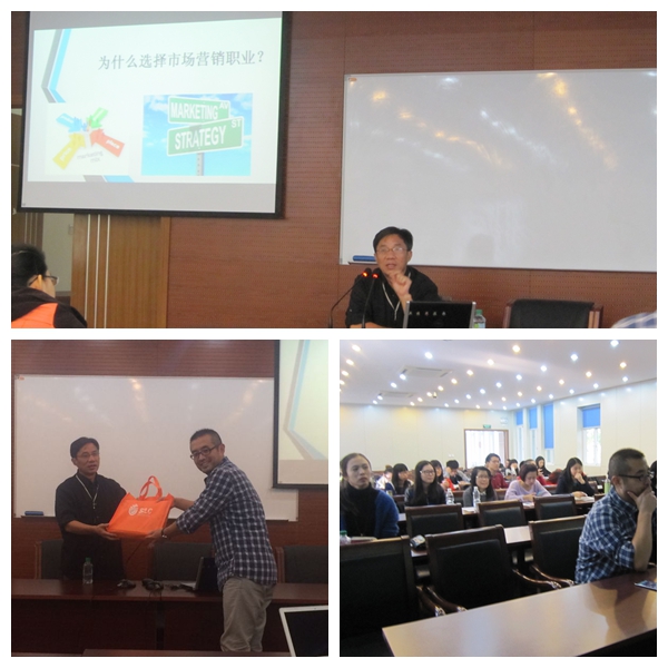 王教授首先和大家讨论什么是营销学,并比较了三种不同的观点。他提出营销学的主要工作是策划,要从开发消费者需求的角度来理解营销学,随后引用了许多经典案例来阐述营销学思维。王教授提出市场营销成功的关键是提高产品的附加值,接着着重介绍了一些世界著名企业的品牌发展道路,其中有成功的案例,也有失败的案例。比如万宝路由一个女性化的品牌成功转变为西部牛仔形象的品牌;IBM通过品牌的几次华丽的转身始终保持强大竞争力;但是索尼由于忽视市场需求的变化,在速度上输给了三星;百年品牌柯达不思变革,从滞后市场最后退出市场;星巴克离开目标市场,失去了传统定位意味着失去了灵魂。 之后,王教授给同学们介绍了营销学的职业展望,他归纳市场营销就业包括inbound (内部操作岗位)和outbound(外部操作岗位),并提出优秀的市场营销职业人士需要具备的品质,包括激情和感染力、自信、创造力、分析能力、书面口头沟通能力和亲和力。最后王教授给同学们介绍了市场营销人士的职业途径和收入状况方面的情况。 王教授的讲解图文并茂,与在座的同学和老师深入交流互动,各种案例穿插其中,引发了在座的悉商同学们深深的思考。这次讲座让悉商的同学们对市场营销学,对市场营销职业有了更进一步的了解,对自身未来的学习和职业发展都有了更加深刻的认识。(科研部) |