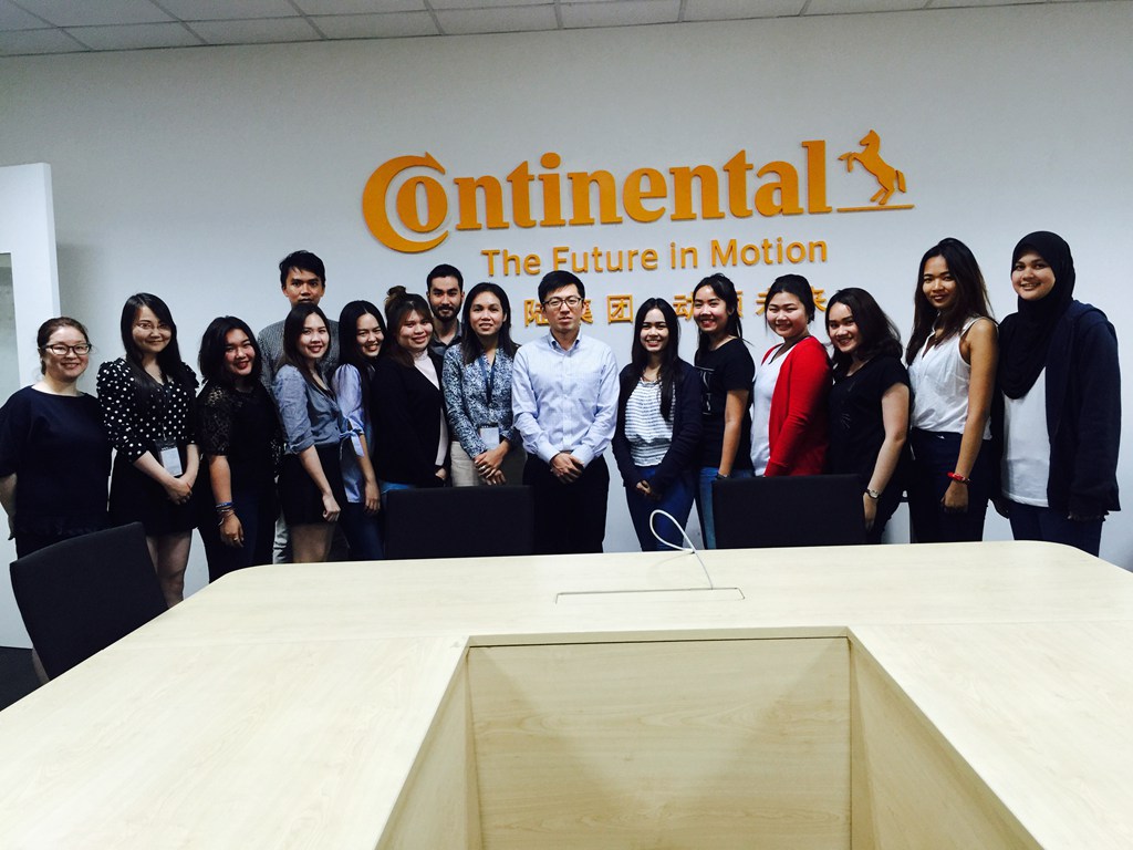 午餐后,Piyawan博士和Panomsak在国际部的陪同下来到位于嘉定区的德国大陆汽车公司财务中心,目前11位泰国学生在此实习。悉商一行人员的到来受到公司的欢迎。区域主管许萍为悉商来访人员介绍了公司的发展状况与主营业务,高度赞扬了泰国学生的实习表现。Piyawan表示,悉商安排学生进入外企实习,能够极高的锻炼他们的业务能力,为今后真正进入公司打下良好的基础。除此之外,也锻炼了学生的语言能力和人际交往能力。通过为期2个月的实习生涯,学生的"软实力"得到了明显提升。