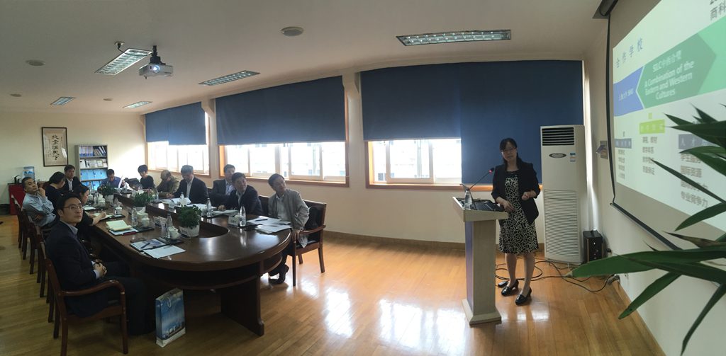 5月20日下午,上海纽约大学校长俞立中担任组长的,来自上海外国语大学、华东师范大学等高校的专家领导构成的评审专家组一行7人,由上海市教育评估院领导、2138cc太阳集团国际事务处副处长吴英俊陪同,来2138CC太阳集团进行现场访视。学院院长龚思怡、党委书记李双、常务副院长吕康娟、副院长胡笑寒、副书记卫静芬、副院长毛雁冰及学院各系、部主任、骨干教师代表、学生代表参加接待及现场访谈。