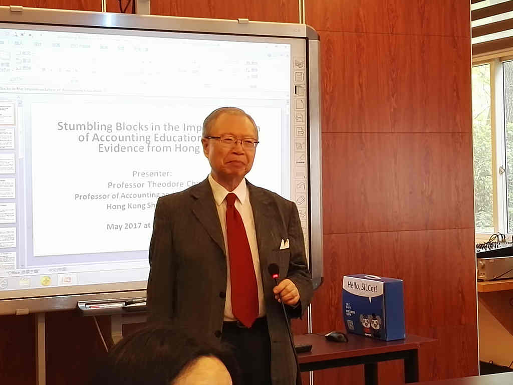 陈教授从美国会计教育改革说起,通过自己早年在北美的亲身经历分享了美国在会计教育改革过程中遇到的困境及经验;次介绍了他在香港对会计教育改革所做的研究,包括雇主、会计师公会和会计学者的意见反馈,目前高校会计教学与科研现状,以及会计专业学生专业素质与通识素质等各方面,并分析了目前香港在会计教育改革方面面临的绊脚石;最后将会计教育改革的视角扩展到美国和香港以外的国家和地区,让大家对会计科研与教育、会计专业毕业生的就业现状有了更深入的认识。陈教授高屋建瓴,深入浅出,引发在场老师和同学阵阵掌声。 在问答交流环节,老师和同学们纷纷与陈教授进行互动,同学们对香港会计教育、会计资质证书、就业去向等问题颇为关注,陈教授对大家的提问进行了逐一解答。陈教授亲切随和,平易近人,讲座气氛轻松活跃,在场师生获益良多。(认证办公室) |