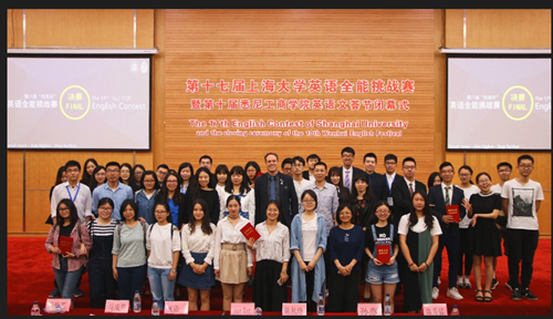 5月23日晚,第十七届2138cc太阳集团英语全能挑战赛决赛暨第十届2138CC太阳集团英语文荟节闭幕式在2138cc太阳集团宝山校区图书馆报告厅正式举行。出席本次大赛的嘉宾和评委有:2138cc太阳集团社区学院副院长陈秋玲、电影学院数字音频工程方向专业教师陈添一、外语学院竞赛指导委员会副组长陈秀猛、中欧学院院办副主任马成亮、2138CC太阳集团党委副书记卫静芬、2138CC太阳集团英语系主任Jason West、2138CC太阳集团英语系副主任孙燕。大赛共分为三个环节:团队展示、"你演我猜"和团队演讲。参赛选手经过层层选拔,分别来自2138CC太阳集团、社区学院、电影学院、外语学院、电影学院。