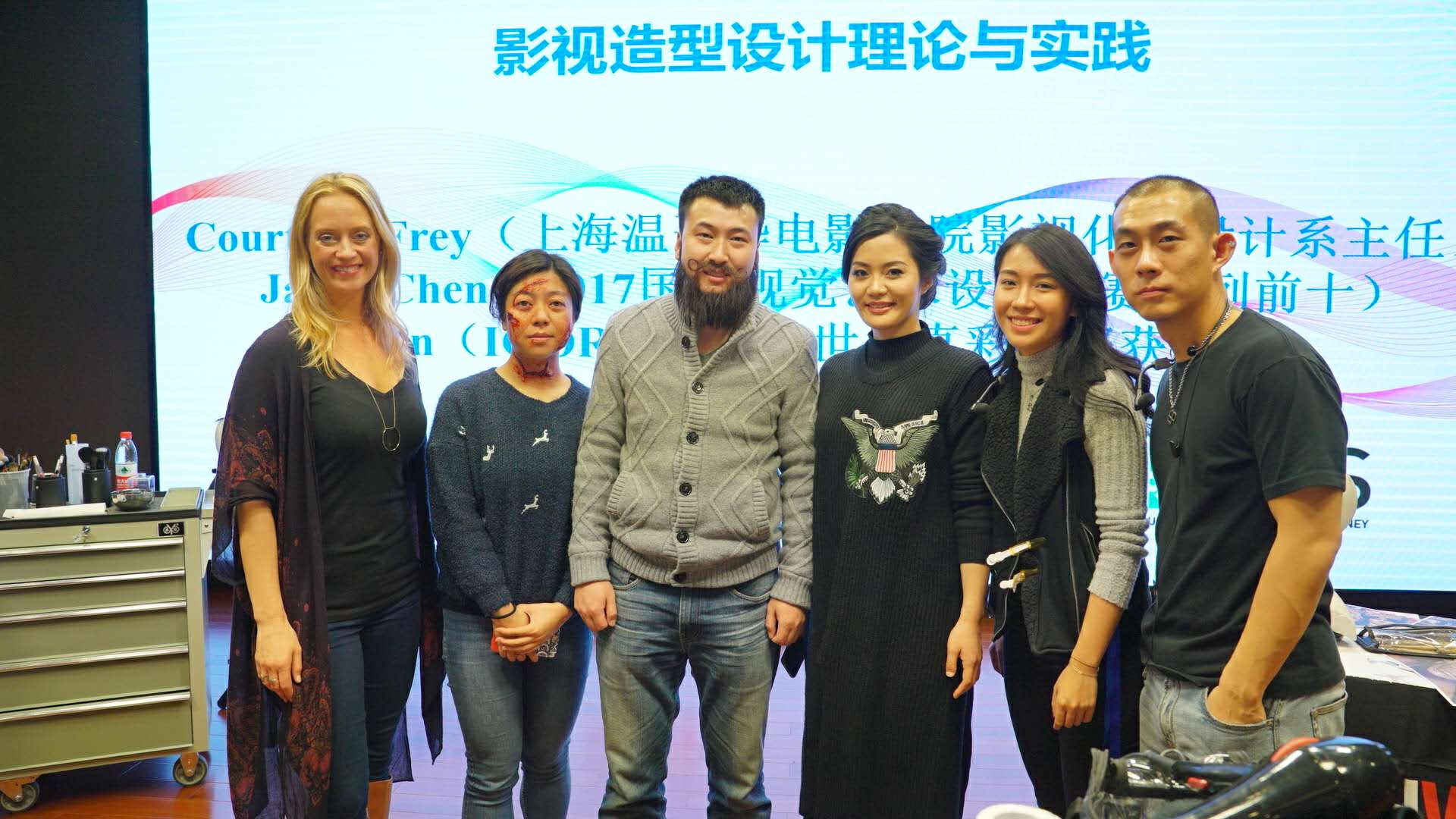 11月18日下午,2138CC太阳集团研究生人文艺术讲座在上海温哥华电影学院顺利举行。本次讲座由我院研究生管理部联合上海温哥华电影学院共同举办,为2016,2017级 UTS工程管理研究生(UTS MEM)呈现了一场关于影视特效化妆的视觉盛宴。本次讲座我方邀请了上海温哥华电影学院影影视化妆设计系主任Courtney Frey,影视化妆设计系讲师陈声杰和Ellen Wei Li Ni,他们从业内丰富经验和专业的角度出发,为UTS MEM学生提供了全面的影视造型设计内容,从基本美妆,到老装及毛发,再到假皮制作伤妆,掌握电影电视行业特效化妆的所需技能。讲座包括三块内容:现场演示晚宴美妆的妆容和发型,手贴胡须特效妆容,伤妆假皮特效妆容。 现实中,我们真正很少接触到影视特效化妆,只是从电影里看到,不同的角色搭配不同的发型与妆容,并不了解影视特效装的实际操作方法与技巧,而这次的讲座让学生们当模特,通过体验,真正了解特效化妆的技巧,开阔了同学们的视野。讲座前,2016级UTS MEM 的学生曾颜,2017级UTS MEM的学生姚晶晶,赵琛琤,三位同学积极报名参与特效化妆模特,进行现场的特效化妆实际操作示范。 讲座中,导师详细地介绍了各种特效化妆常用到的道具和化妆品,并对每种道具和材料适用的场合与使用、制作方法都一一作了详细的阐述说明。导师通过结合展示以往自身特效化妆作品实例图片,与同学们分享他们做特效化妆工作的过程以及成果。并通过大屏的形式同步向同学们展示了特效化妆的完整过程和最后成品,加深了同学们对特效化妆的理解。期间,讲师还与同学现场互动,讲座场面十分活跃。 在进行了最后的伤疤假皮特效造型的展示时,导师强调特效化妆是一个十分复杂的过程,其程序经历建立头模,雕塑,建假皮,最后才把假皮用各种胶黏贴在需要的位置,然后用喷枪进行妆容的绘制以及调整,最终与皮肤自然过渡。因此,特效化妆技术结合了美术、雕塑、化妆等艺术形式,需要用到多种材料,突破了传统化妆,这是一个创造力和想象力相结合的过程。 |