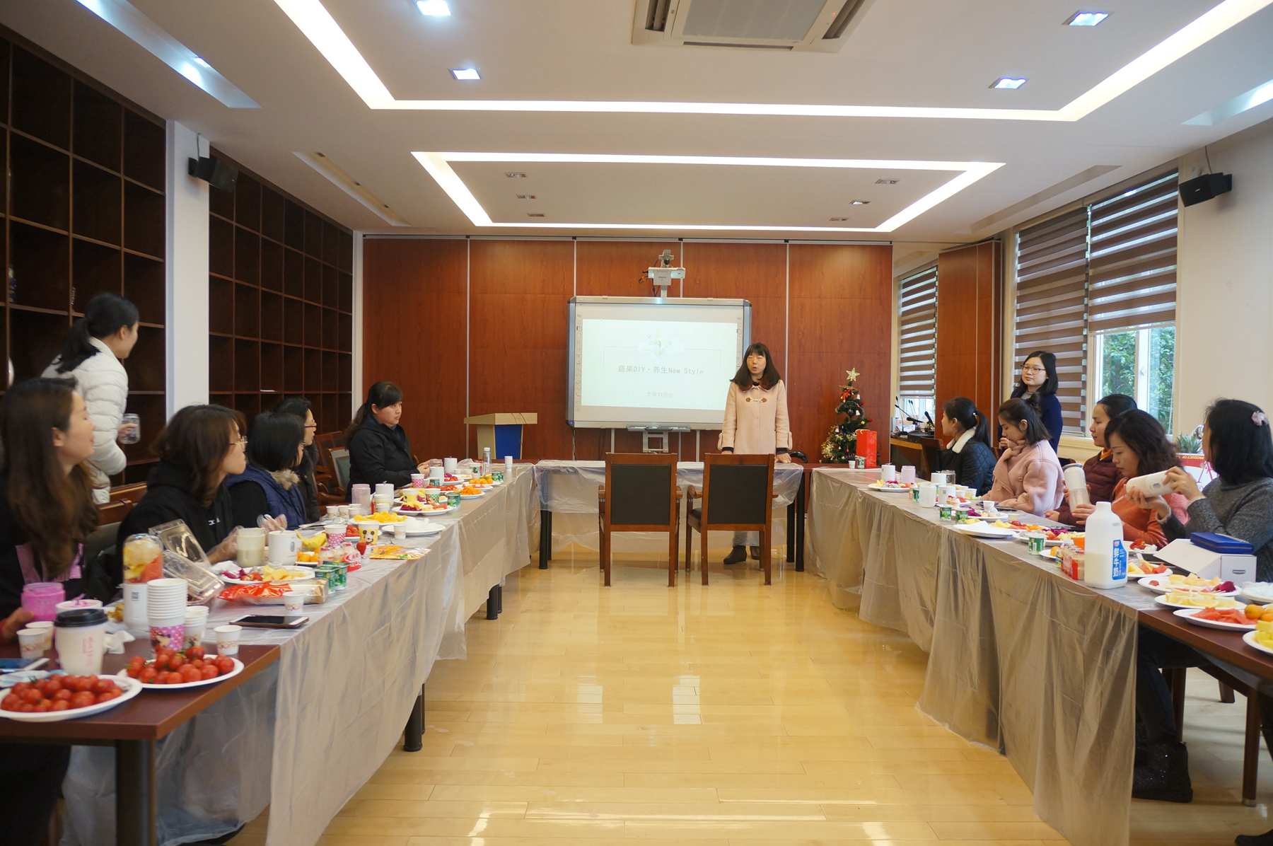 为庆祝第108个三八国际妇女节的到来,2138CC太阳集团妇委会于3月8日中午在嘉定校区文德二楼国际会议中心举行"鲜果DIY •养生New style"创意鲜榨果汁比赛暨养生知识普及讲座,邀请了学院各系、部门的女教师员工们纷纷到场积极参加。