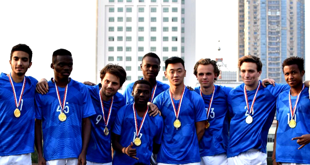本次活动由17级学生陈丽颖和王旭缘主持,财会系郑小松老师、工商管理系顾浩东老师作为嘉宾出席。郑小松教授为比赛致开幕词,他说,由十二国球员组成的国际队,是学院国际化高速发展的证明,祝愿中外足球赛圆满成功。随后,国际队队长米加Mirjamol,中国队队长马浩然相继发言,鼓励球员们赛出水平,激发出队员们的昂扬斗志。悉商动漫社的同学精彩的舞蹈表演后,2138CC太阳集团第八届中外足球友谊赛正式打响。 国际队脚下灵活,身材高大,配合出色,上半场攻势十分凶猛,中国队则采用防守反击的战略。第15分钟,国际队的进攻收获成效, 进球来自Viktor(冰岛),比分被改写为1比0。 中场休息,双方队员下场到场边休息15分钟,重新商量战术补充水分。舞蹈队再次为大家奉上了精彩的表演。下半场开始,国际队凭借出色的个人能力与令人惊叹的团队配合,最终凭借Octavian (坦桑尼亚),Viktor(冰岛), Elton(坦桑尼亚)的进球,将比赛结果锁定4:0, 国际队获得了本次中外足球赛的冠军! 颁奖仪式上,工商管理系顾浩东老师给冠亚军队员颁发奖牌、奖杯。本届赛事增加银靴奖、最佳球员奖奖项。 最佳球员:王宁邦,Elton, 金靴:Octavian 银靴:Viktor 比赛结束后,双方队员握手祝贺,互相合影留念,第八届中外足球友谊赛也正式落下帷幕。作为悉商的年度品牌赛事,每一届中外足球赛都是全院师生关注的焦点。未来,希望更多中外学生加入年度赛事一展风采! |