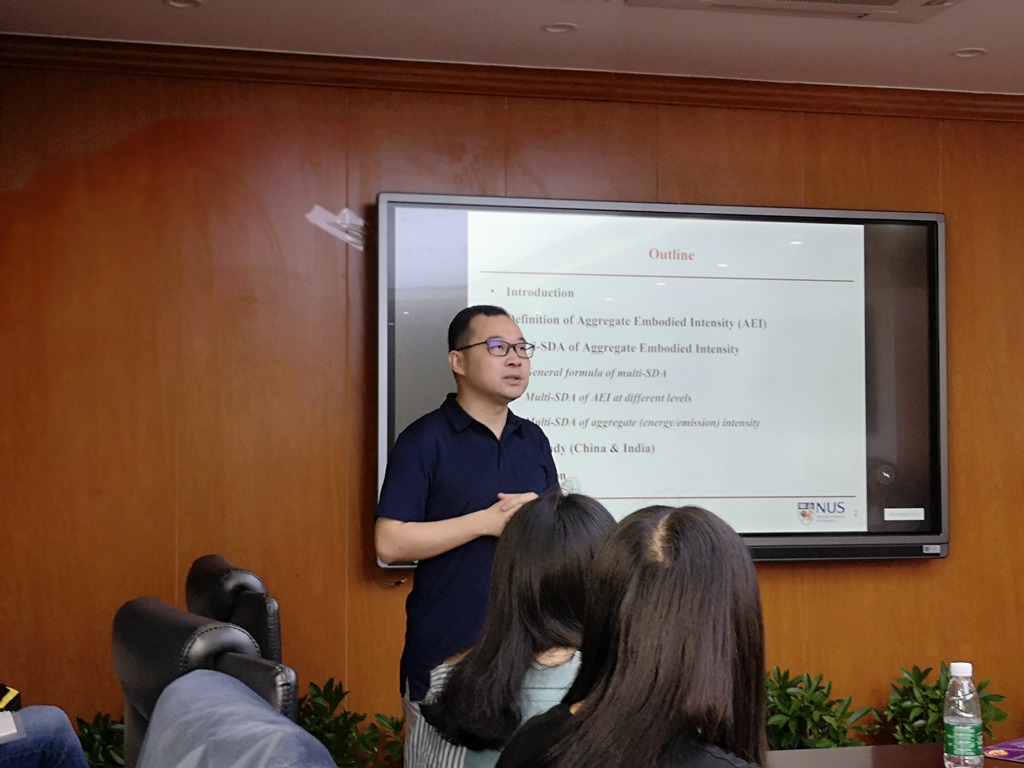 讲座正式开始前,李书记对苏教授进行了简单介绍。苏教授是新加坡国立大学能源研究所高级研究员,能源与环境研究中心副主任,同时也担任新加坡节能和低碳路径发展研究项目总负责人。主要研究领域为能源和环境经济与政策、能源与气候变化、能源环境系统建模和分析,在能源和环境相关的国际期刊上已发表SCI/SSCI论文70多篇,研究工作被引用3500多次。现任Energy Economic期刊副主编和客座主编,Applied Energy和Journal of Cleaner Production客座主编,Reports on Economics and Finance编委、《环境经济研究》和《中国石油大学学报(社科版)》编委,以及60多个国际期刊审稿人。