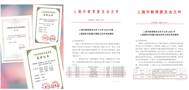 课程建设纵深发展 学院进一步系统优化课堂教学,推动课堂教学革命,打造通识与专才教育相结合、复合型、基于翻转课堂、公开示范课引领的混合式教学“金课”。积极推动案例库资源库建设推广,与专家一对一面对面进行研讨,层层推进课程建设工作向纵深发展。 十三五期间,我院共获得和完成各类课程建设和课程改革项目共计91项,其中省部级9项,校级50项;获得和完成各类教学成果和教学研究项目9项,其中国家级教学研究项目1项,省部级教学成果奖2项;获得上海高校市级精品课程、上海高校优质在线课程、上海市本科重点课程、上海高校本科重点教学改革项目、上海高校外国留学生英语授课示范性课程、教育部教指委金课等省部级项目共12项。