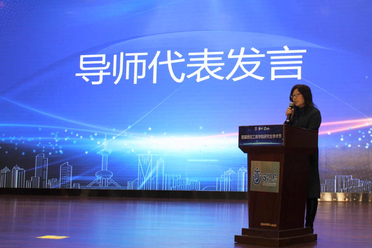 悉商研究生工作多年发展离不开社会各界各行业的关注与支持,更离不开众多校内、校外导师的辛勤付出。校内导师代表贾利军老师、校外导师代表费晓峰老师发言表达了对本次活动组织的认可,并感谢学生们的推荐:“常言道,学海无涯苦作舟,但是浩海扬帆如能以爱为舟、以情为浆,那么苦旅将更加充实和快乐。”导师与学生的关系不仅是师生,也是终身挚友。导师们将继续严格要求自己,精心指导学生,与学生一同成为教学相长的好伙伴。