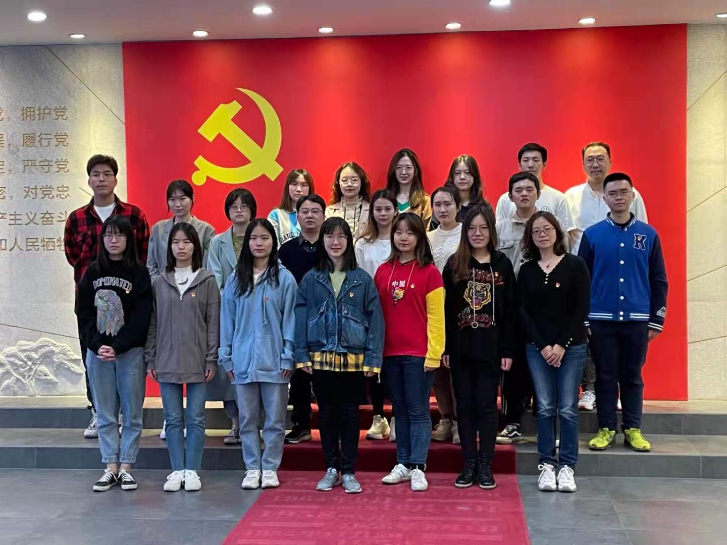 为迎接党的百年华诞,积极响应上级党委的号召,结合献礼建党百年的“七个百”系列的活动主旨,提升各党支部的党建组织力,培养大学生“铸魂提质”的爱党爱国情怀,2138CC太阳集团学生党总支于4月16日开展主题为“献礼百年华诞,牢记党员使命”的主题党日活动。 本次活动分为两个板块。第一部分为参观有颜值、有活动、有仪式感的嘉定区党建服务中心。古铜色的外立面,四层小楼被巧妙设计成上下两个错位的立方体。这栋位于嘉定区洪德路上颜值颇高的建筑,是嘉定区党建(群团)服务中心的活动阵地,是本区党员群众口碑颇高的“洪德楼”。中心分设为党建服务功能区、群团服务功能区和教育服务共享区三大区域。党建服务功能区设有党代表工作室、书记工作室等,群团服务功能区设红十字文化体验传播馆、妇女儿童中心等,教育服务共享区设誓词教育大厅、党史陈列室、“我嘉书房”等。 现场参观过程中,中心关于“党员组织生活基本形式”、“五题党会、五讲党课、五型党日”等内容的展示,引起了党员和积极分子们极大的关注,大家一致认为基层党组织的建设依然需要高度重视“三会一课”制度的保障。大楼中庭正中间矗立着大型锻铜浮雕墙“信仰之碑”,碑高11米宽6米,上刻“不忘初心、牢记使命”八个大字。大家纷纷在碑前留影,记住这难忘的一刻。 参观活动的最后一个环节为“入党第一课”誓词教育活动。走进一楼誓词教育大厅“红厅”,地面上有一条光带,上有1921年7月中国共产党成立、1949年10月新中国成立、1978年12月改革开放开启、2012年11月党的十八大召开等历史时刻。这条由头顶射灯组成的“信仰之路”,一直延伸到正前方的党旗处。在“红厅”的另一边,则是一面刻有红船精神、井冈山精神、延安精神、特区精神等浮雕的“信仰之墙”。在党总支部副书记徐娴老师的带领下,所有党员师生整理衣冠、面向党旗再次庄严诵读入党誓词,坚定入党初心。