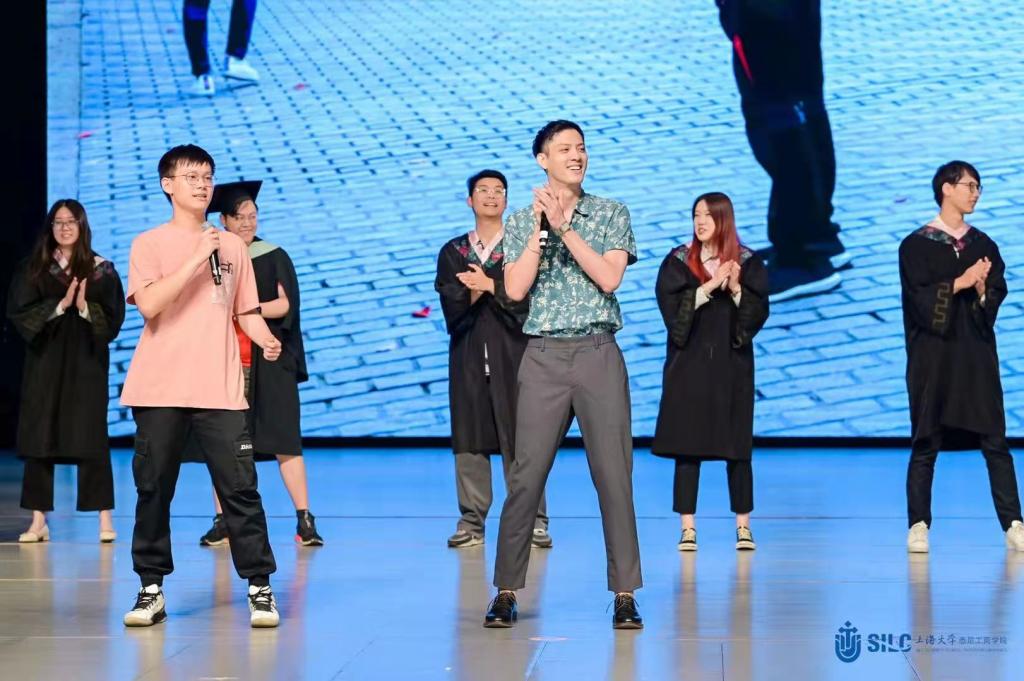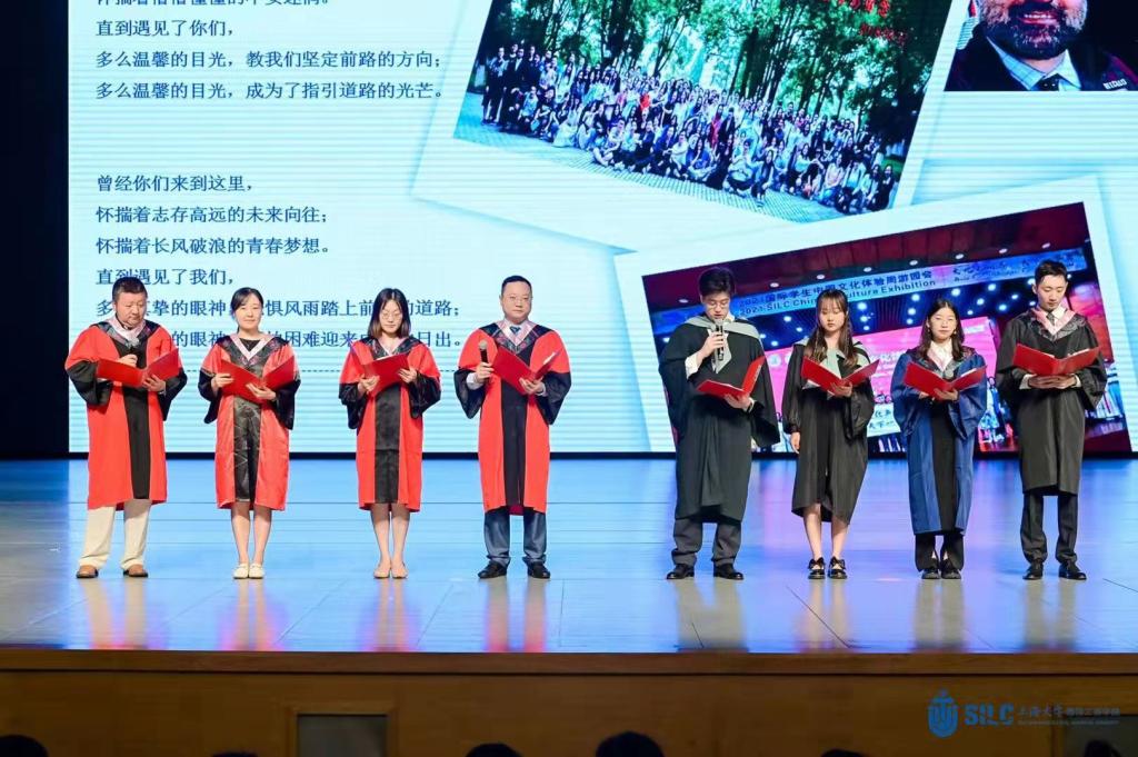 经济学系陈军老师联袂工管系蔡震尧老师、财会系刘焱老师、学工部颜丽娜老师和中外学生共同排演的情景剧《成长—感恩》,情真意切,语带哽咽,一段师生共同奉献的心灵鸡汤,激起全场雷鸣般掌声。 学院副院长卞亦文颁发留学奖学金。适值我党百年华诞,毕业生代表原创诗朗诵《回望百年党史,谱写青春赞歌》,用满怀深情的语言,引领毕业生们再次回望从1921到2021属于党和人民的不朽史诗,毕业学子展望未来豪情无限,决心用韶华和热血继续谱写一曲崭新的青春赞歌。
