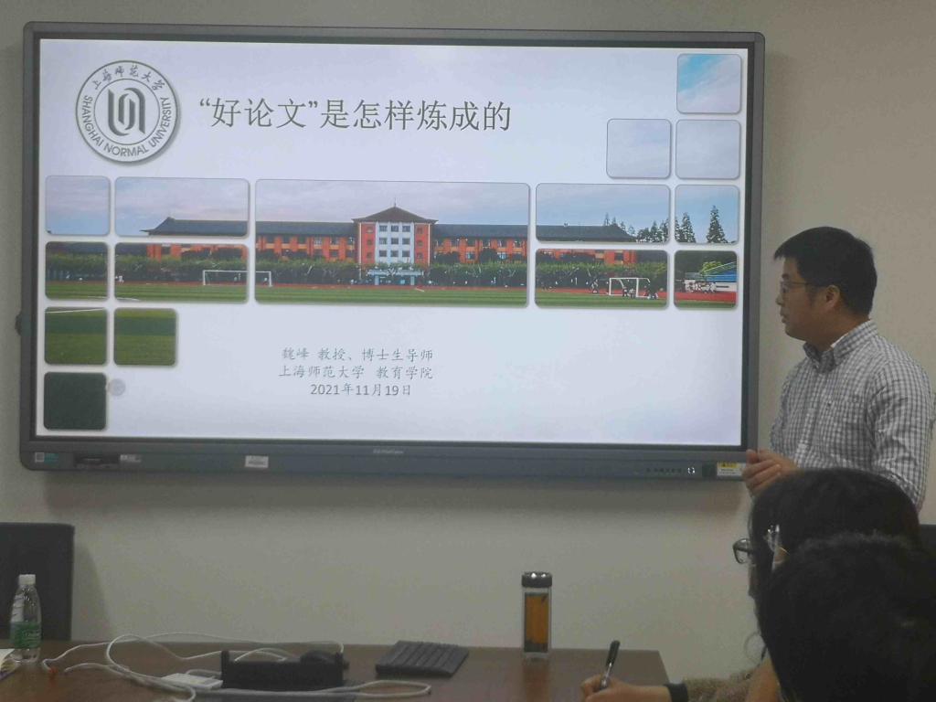 学术写作是一项需要长期积累和坚持的工作,写出“好论文”需要不断打磨和修订。魏峰教授以自身的经历现身说法,介绍了自己从事教育研究与进行创作的经历与经验。魏教授认为,写作首先要有激情,只有自己真正想写的东西才能写好;其次需要基于学术的理性分析,做精致的学术研究。针对论文如何选题,他进行了详细的阐述,建议找到“个体困扰与社会议题”的结合点,从中提炼要写作的主题,保证选题新颖突出,并列举了“民办教师”、“七八月的孩子们”等相关选题实例,让人耳目一新。 讲座结束后,大家进行了热烈的讨论与交流。针对老师们的问题,魏峰教授一一进行了回应。魏峰教授博览群书,写作经验丰富,讲解与讨论中多次提到要阅读社会学、人类学、教育学等多学科经典著作,对已发表的学术论文如数家珍,信手拈来,让现场老师们纷纷赞叹,感觉获益颇丰。 |