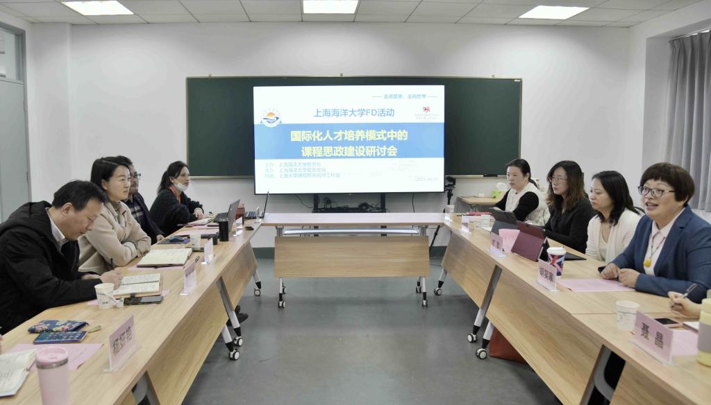 11月17日,胡笑寒副院长率学院课程思政名师工作室全体人员前往上海海洋大学,与爱恩学院一起进行关于“国际化人才培养模式中的课程思政建设”的研讨会。 学院课程思政名师工作室,是由胡副院长牵头组织,并向学校提出申报,经过学校专家评审后,11月刚刚被遴选为学校的8个课程思政名师工作室之一。“以中国心阅世界,以世界眼育中国”是工作室的核心理念,旨在发挥中外合作办学优势特色,以人类命运共同体为培养认知,形成课内外联动建设体系,让中外学生在理论熏陶和实践学习中获得成长;深化第一课堂建设内涵,建设特色案例库,开展课堂革命;丰富第二课堂,设计符合中外学生融合发展的课外场域实践,增强中外青年的全球胜任力。