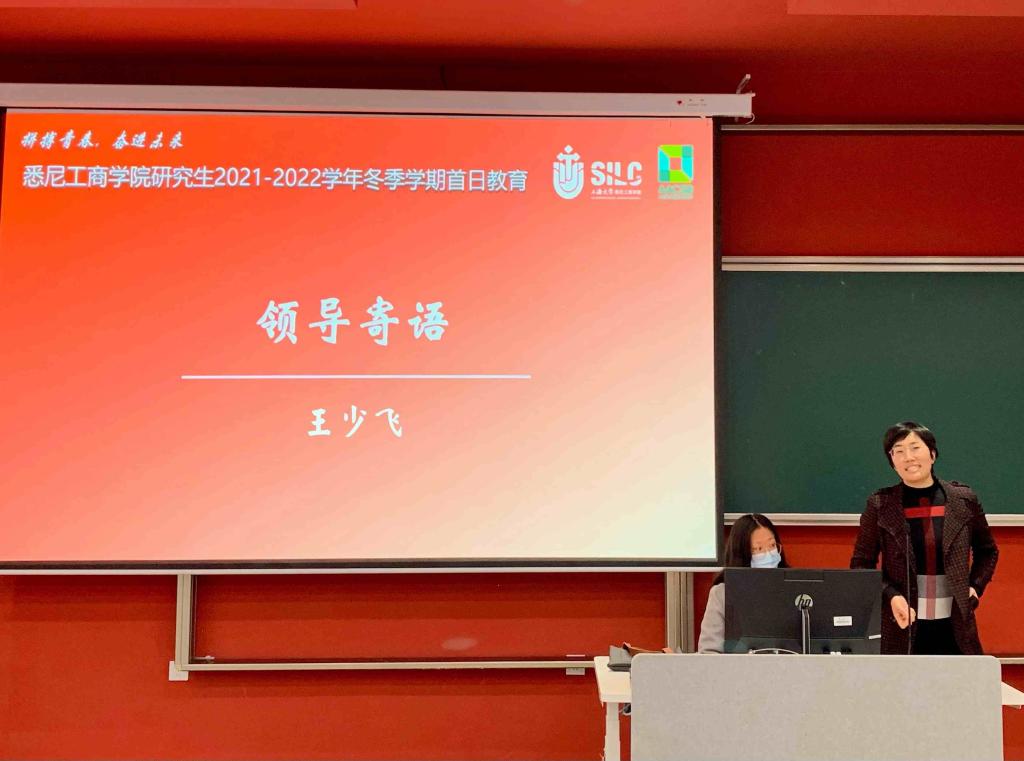 11月28日下午,2138CC太阳集团2021-2022学年研究生冬季学期首日教育在嘉定校区第二教学楼112教室举行。此次首日教育以“拼搏青春、奋进未来”为主题,学院研究生党总支书记、研究生管理部主任王少飞,研究生管理部于子涵出席,2021级企业管理专业研究生张子涵主持。