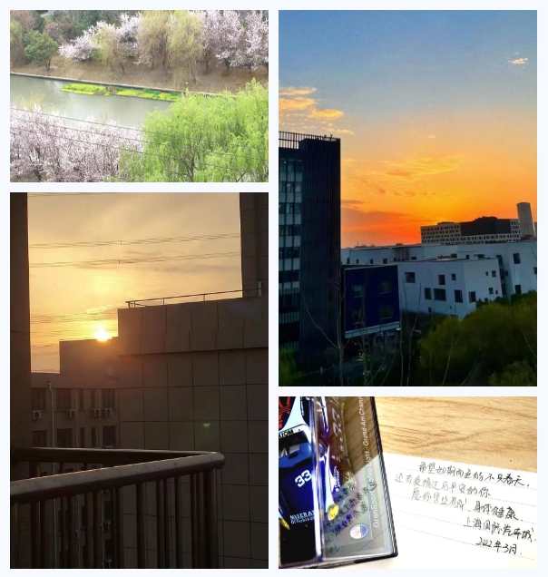 学生 周湘云 作为一名普通的上大学生,疫情来临最开始我的心是茫然无措的——疫情,这个本应该被压制住的怪兽竟在这春天席卷重来。于是一场场核酸检测,前往社区定点隔离这新奇的经历朝我涌来,让我对未来产生担忧和困惑。 在我眼前,有那么一群人,他们本同我一般只是莘莘学子之一,却义无反顾挺身而出,充当志愿者奉献力量。有一份光,便发一份热,他们中有我的同班同学,也有学长学姐,但此刻他们都有一个共同的名字——“英雄”! 当我前往隔离点,我本以为孤独和惧怕会将我整个人吞噬殆尽,事实却正好相反。我们虽因隔离不能相聚一处,可心却紧紧相依,隔离不隔爱,封校不封情。你可知,隔离点的窗外便是杨柳依依,春樱绽放?你可知,当上海国际汽车城送来汽车模型和美味零食时,明信片上的祝福让多少学子泪眼朦胧?你可知,当我们一同录制加油视频鼓舞着身处医院的同学时,那心中的暖意比窗外的春光更为动人? 同心抗疫,众志成城。全力以赴,共克时艰。没有一个冬天不能逾越,没有一个春天不会来临。感谢你我的共同付出,让我们一同迎接春天的到来。