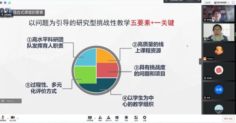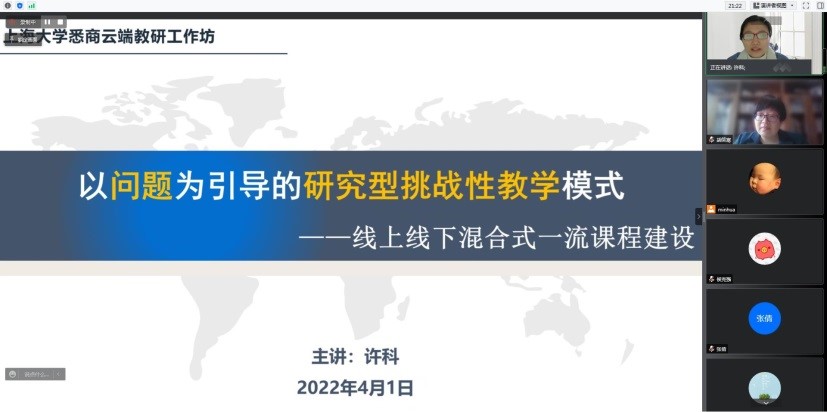 研究型挑战性课程的认定开展已有几年时间,学院不少老师申请了研究型挑战性课程的项目,为帮助老师们更加准确和深入地理解研究型挑战性内涵,深化推进本科教育教学改革的实践, 4月1日下午,学院教发中心特邀管理学院副院长许科线上为全院教师作题为“以问题为引导的研究型挑战性教学模式”的分享。手握各种教学奖项的许科老师对于研究型挑战性课程有着独到的思考和研究,并将这些思考付诸教学实践,不断进行升级优化。分享会由学院教学副院长胡笑寒主持。