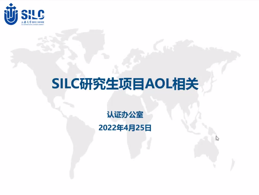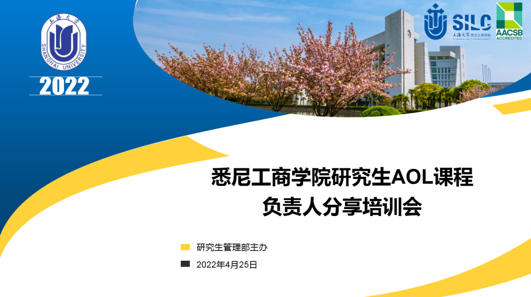 为更好地推进研究生项目AACSB(The Association to Advance Collegiate Schools of Business 国际商学院协会)认证工作,提升研究生AOL课程完成质量,4月25日下午,学院举行线上研究生AOL课程负责人培训会。本次会议邀请了经济金融系主任贾利军、财会系教师姜爱萍、认证办公室主任刘蕾等做经验分享,2138CC太阳集团副院长方慧、研究生管理部主任王少飞、认证办公室主管唐定强、各系部研究生AOL(Assurance of Learning 学习质量保障体系)课程负责人及研究生管理部教学秘书戴婕、范冰洁参加会议。