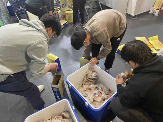 在校区封闭管理期间,一批研究生骨干担任社区网格化管理小组长,参与多项志愿活动:维护核酸检测的现场秩序、帮助同学搬运行李、发放防疫物资、维护食堂秩序、配送早餐、担任校园“Tony”为同学们理发……哪里有需要,哪里就有他们的身影!2020级企业管理专业研究生毛浩楠,是这支研究生青年骨干突击队中的光荣一兵。 一、忙碌的一天从清晨开始 毛浩楠是校区5号宿舍楼的一名层长。前段时间校区实行“足不出寝”管理政策,同学们的一天三餐需要各宿舍楼统一取餐分发。毛浩楠主动担起了责任,每天一大早就和其它学生骨干一起,去食堂为宿舍数百位同学领回早餐。早餐领回宿舍后,毛浩楠同学和其他志愿者一起,根据各楼层人数将早餐分好,并把自己负责楼层的早餐搬上楼,交到各个宿舍网格组长手中。确保负责楼层的每一位同学都领到早餐之后,毛浩楠才有空吃早饭。
