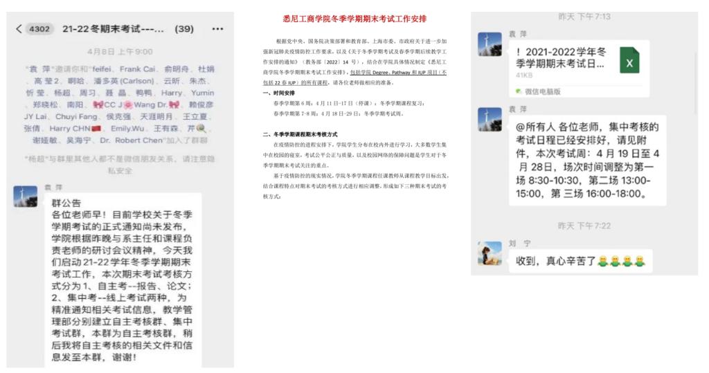 3月初,突如其来的疫情,打断了冬季学期收尾的脚步,期末考试何时考?怎么考?一度成为了师生最关心的话题,在学校教务部的指导下,嘉定校区疫情防控指挥部教育教学工作专班提前研判、科学规划、实时调整,2138CC太阳集团全体教师以敬业的精神和专业的素质圆满完成了学院所有本科生冬季学期的考试实施与管理,共计174门次课程。 针对此次冬季学期的期末考试,学院教学管理部在结合2020年疫情防控期间的线上考试经验的基础上,考虑封控期间学生大量留守校园的情况,进行升级优化,不断摸索,最终形成了以校园疫情防控大局为核心,兼顾质量与公平两大教育教学要素,采用“考情准备期——考务准备期——考试实施期”逐层推进的“一核心两要素三阶段”的考试管理模式。在有效针对每个阶段学生和老师关注的重点问题重点处理的基础上,构建多元沟通平台协同工作,为学生的备考、应考,教师的考核准备和实施提供更为精准的服务与支持。 在考情准备期,教学管理部以校园疫情防控发展的研判为依据,及时了解师生对于期末考试关心的问题。为了建立更为直接和畅通的沟通渠道,教学管理部迅速开通了部门的微信公众号,将第一手的关于考试安排的信息发布给教师和学生。联合学工部门组织了面向学生的教务主任云端分享会,面对面为学生们解答关于考试的相关问题,并通过在线咨询平台,持续解答学生们关于冬季学期考试的各类问题,排解学生们的焦虑情绪,做好学生心中的“定海神针”。 进入考务准备期后,教学管理部联合专业系和学工部门建立分别面向教师的“专业系——课程团队——教务”和面向学生的“学工主任——辅导员——教务”两大工作网络,服务于每一门课程考试的内容与形式,每一位学生的考试条件和考试准备。 1、提高站位,统一思想,与教师展开多界面沟通,优化冬季学期考核方式 3月30日系主任会议、4月7日集中考核课程负责人研讨会,都使老师们充分了解此次期末考试与2020年的不同之处及此次线上考试的新增问题。要求每一门课程都要根据实际情况形成自己的线上考试方案,做好在线考试的充分准备。针对集中考核的情况,与相关教师们进行了重点事项和预案的探讨。 2、主动谋划,精准服务任课教师的考试准备 教学管理部在教师研讨的基础上,形成三类在线考试课程的考试方案和公告样例,规范并有效服务于教师端的考试准备。