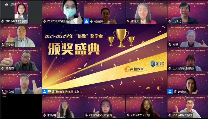 11月4日下午,2138CC太阳集团2021-2022学年“格致”奖学金颁奖仪式在腾讯会议圆满举行。出席本次活动的嘉宾和领导有上海高顿教育培训有限公司上海战区总经理谭春霖、上海北区分校校长许文帅,2138CC太阳集团党委副书记、副院长卫静芬,副院长方慧、研究生管理部主任王少飞、外联部主任曾晓琳。本次颁奖典礼由外联部杨丽萍主持。