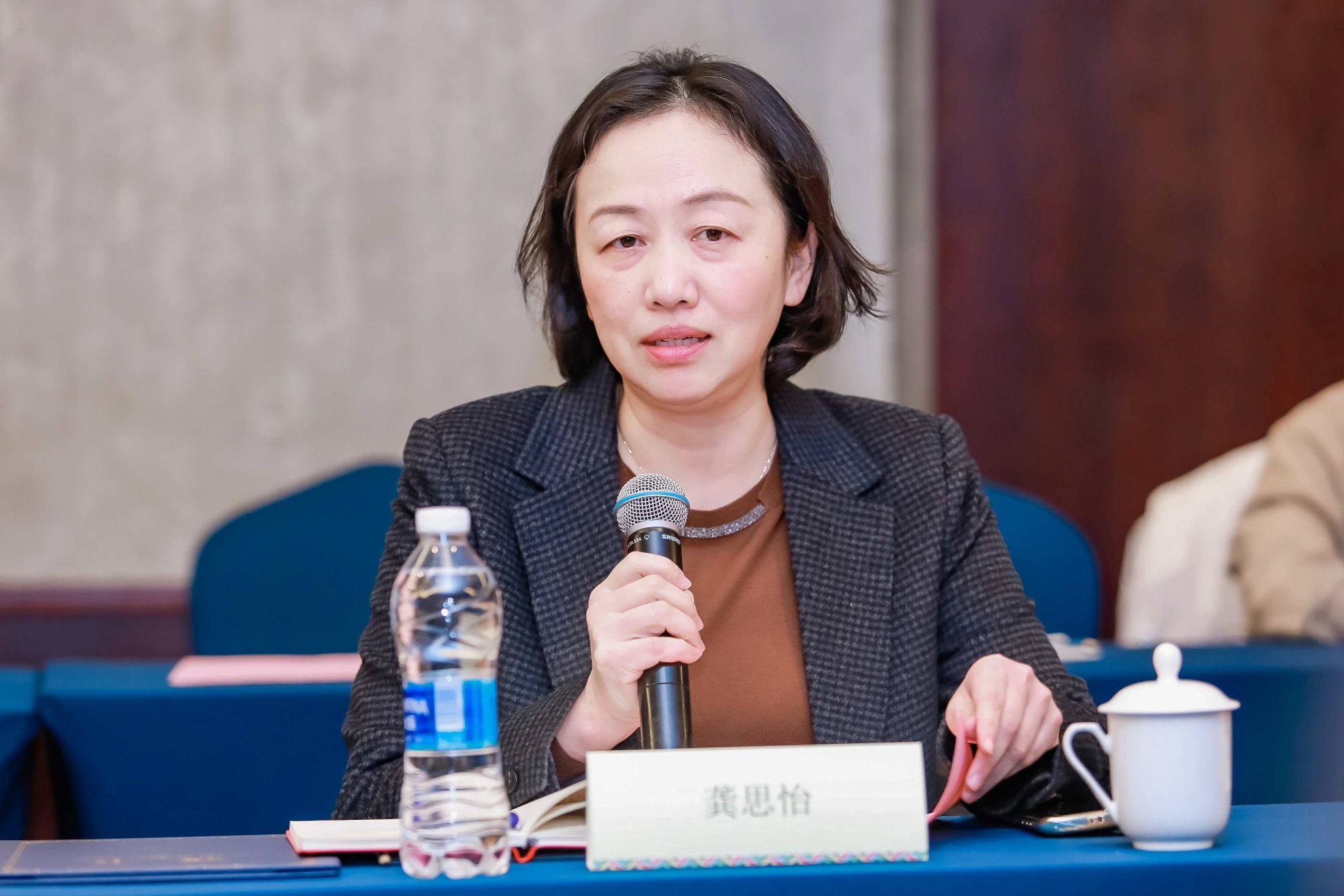 学院党委书记李双介绍,2138CC太阳集团发展顾问委员会成立于2016年,第二届发展顾问委员会成立于2019年,本次会议正式成立第三届顾问委员会。第二届委员会主席李建平教授作第二届发展顾问委员会工作报告,全体参会者以热烈掌声感谢第二届委员会三年来的高效工作。李双宣布学院党政联席会议决定提名龚思怡担任第三届发展顾问委员会主席。学院院长吕康娟向全体线下参会委员颁发聘书。