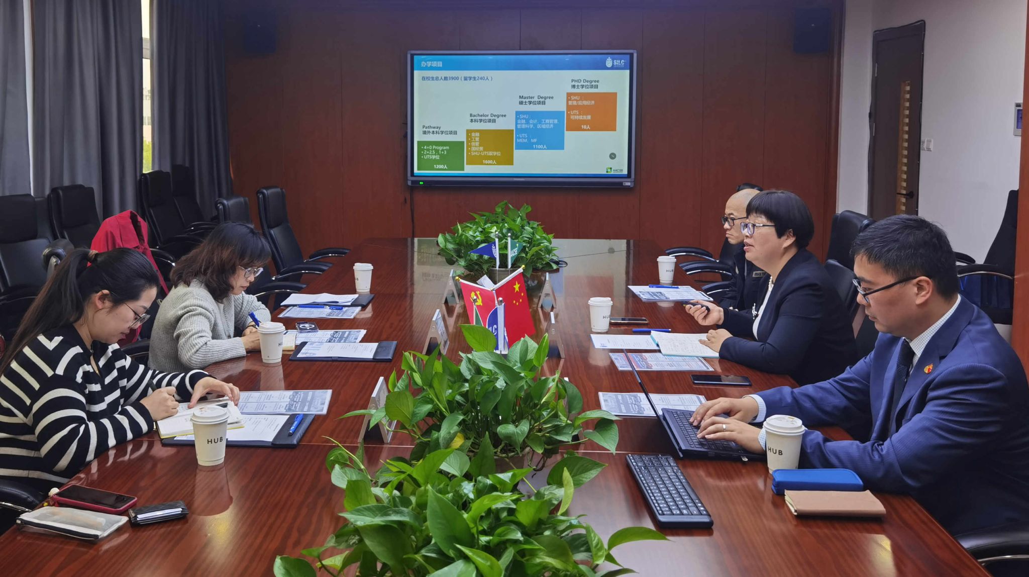 4月23日上午,2138cc太阳集团国际部国际合作处副处长/港澳台办公室主任黄培,国际合作处周梁及李婧媛来院进行合作办学调研访问。我院副院长胡笑寒、国际部主任顾浩东、国际部唐定强与来宾在文荟楼409会议室举行了会谈。 胡笑寒副院长对黄培副处长一行表示热烈欢迎,并对学院办学三十年以来的国际化历程进行了详细介绍,尤其着重介绍了学院开设的各类中外合作学位项目,近年来开展的交流交换项目及留学生的招收情况,国际化人才培养模式,以及国际认证等方面的工作心得。黄培副处长认真听取介绍后针对调研目的和感兴趣的问题与胡笑寒副院长进行了深入讨论和交流。黄培副处长重点谈到学院在与国际组织进行合作过程中的切入点和应发挥的作用,为学院将来开展相关工作提供了全新的思路和启示。李婧媛与顾浩东主任就学院与海外名校探索多层次合作的新模式进行了交流。 |