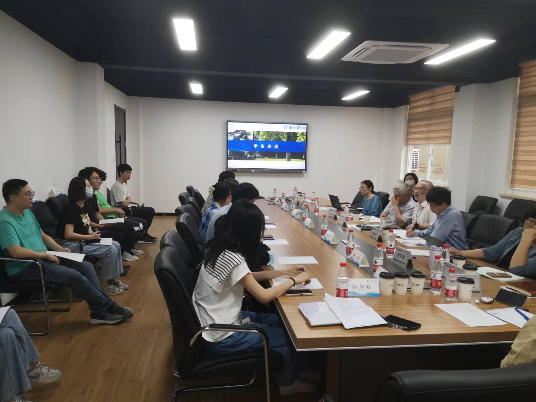 首先举行学生访谈会议,来自学院国际经济与贸易、工商管理、信息管理、金融学等四个本科专业的16名学生参加访谈。审核评估工作小组从学院实验设施设备、图书资源(数据库)、实习实践、就业指导、教务管理、美育课程、体育课程、学科交叉课的课程压力、思政课程、一站式服务有效性等与学生学习和生活息息相关的各个方面进行了详细交流,认真地听取了大家的意见和建议。
