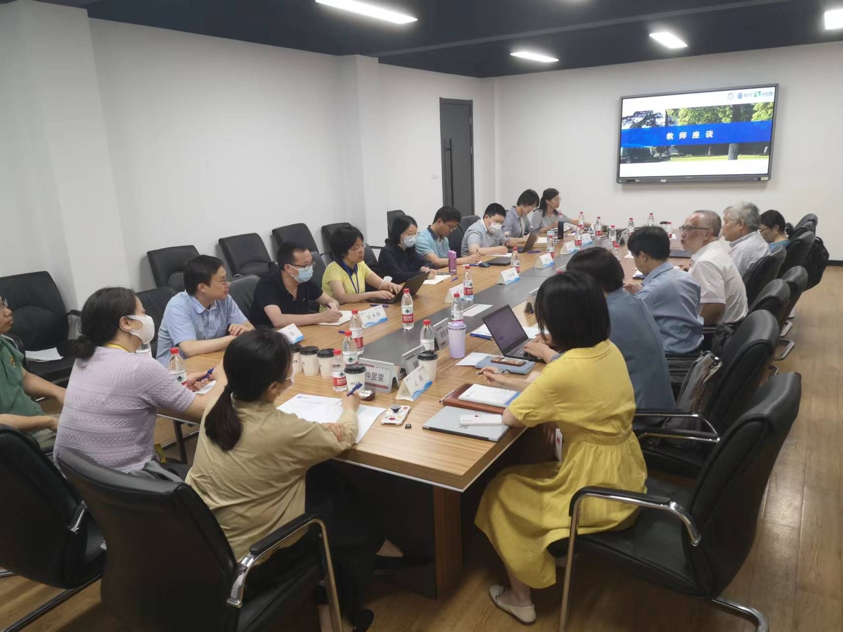 来自学院工商管理系、经济金融系、财会系、信管系、英语系等五个系的十余名骨干教师参加了接着进行的教师座谈会。审核评估工作小组从教师集体备课、学生毕业设计的学术关注度、鼓励教师个人发展的制度建设、教师评价机制的改进、学生预复习情况、师生课堂互动、科研教学分配合理化、听课制度、校院两级教发中心如何提供更优质服务等多个方面向教师代表详细征询了意见建议。